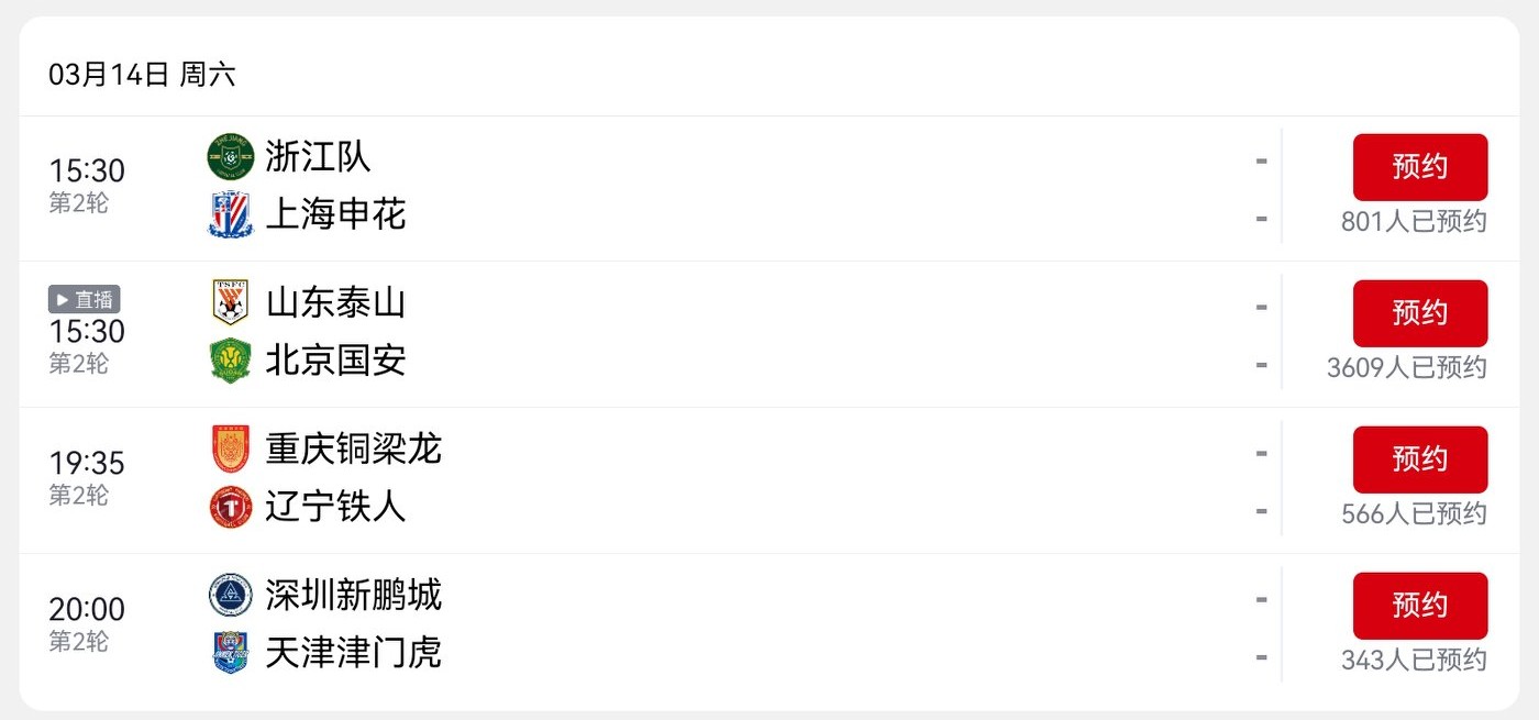 The CSL schedule tomorrow (2026.3.14) is Shandong Taishan vs Beijing Guoan, live on CCTV-16.