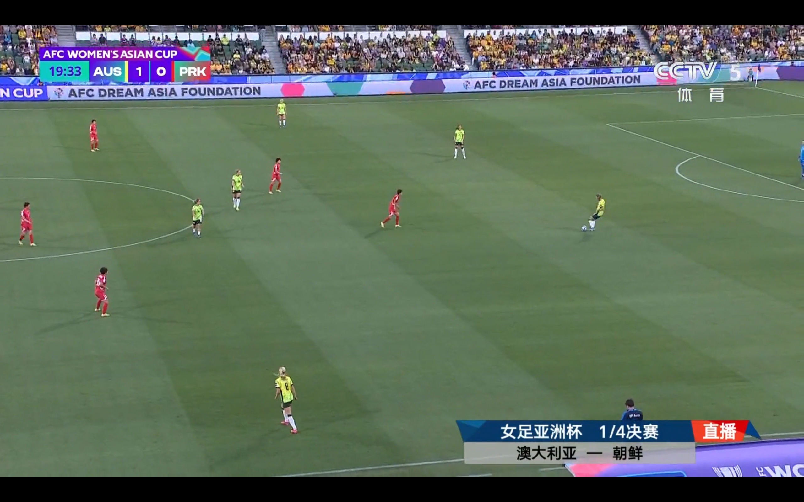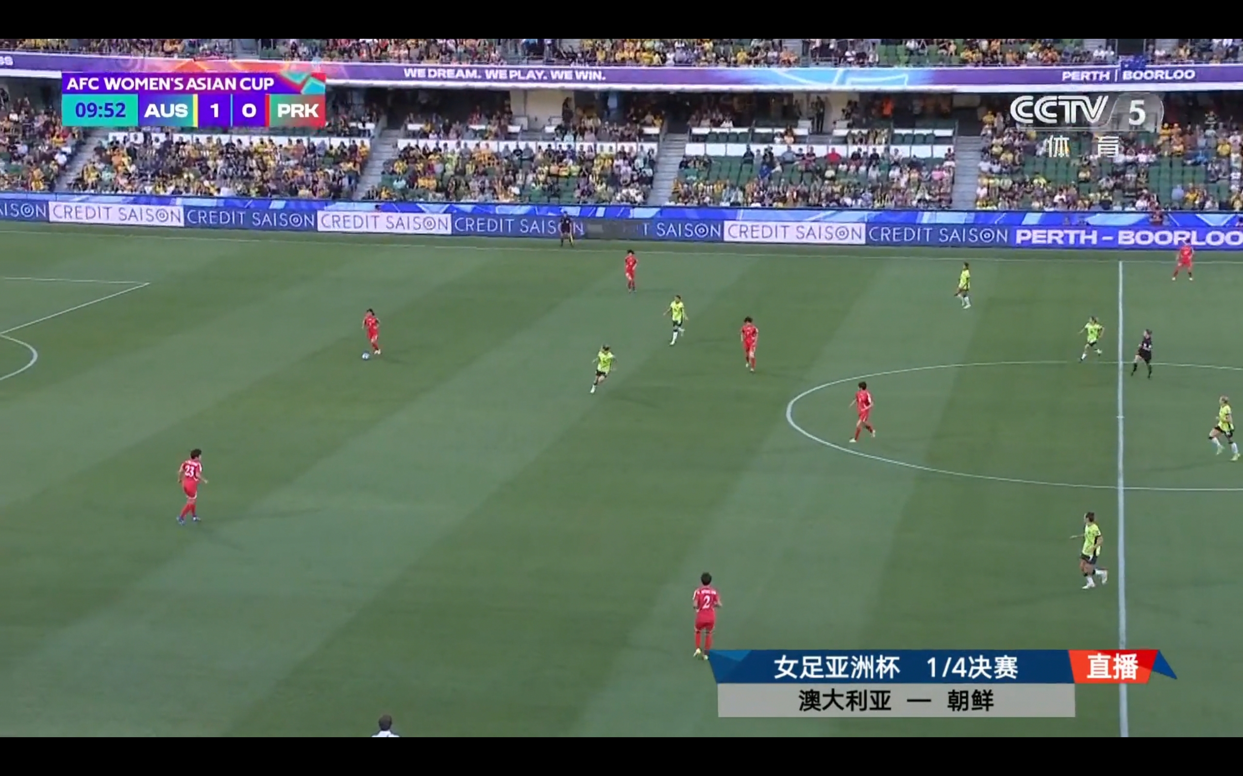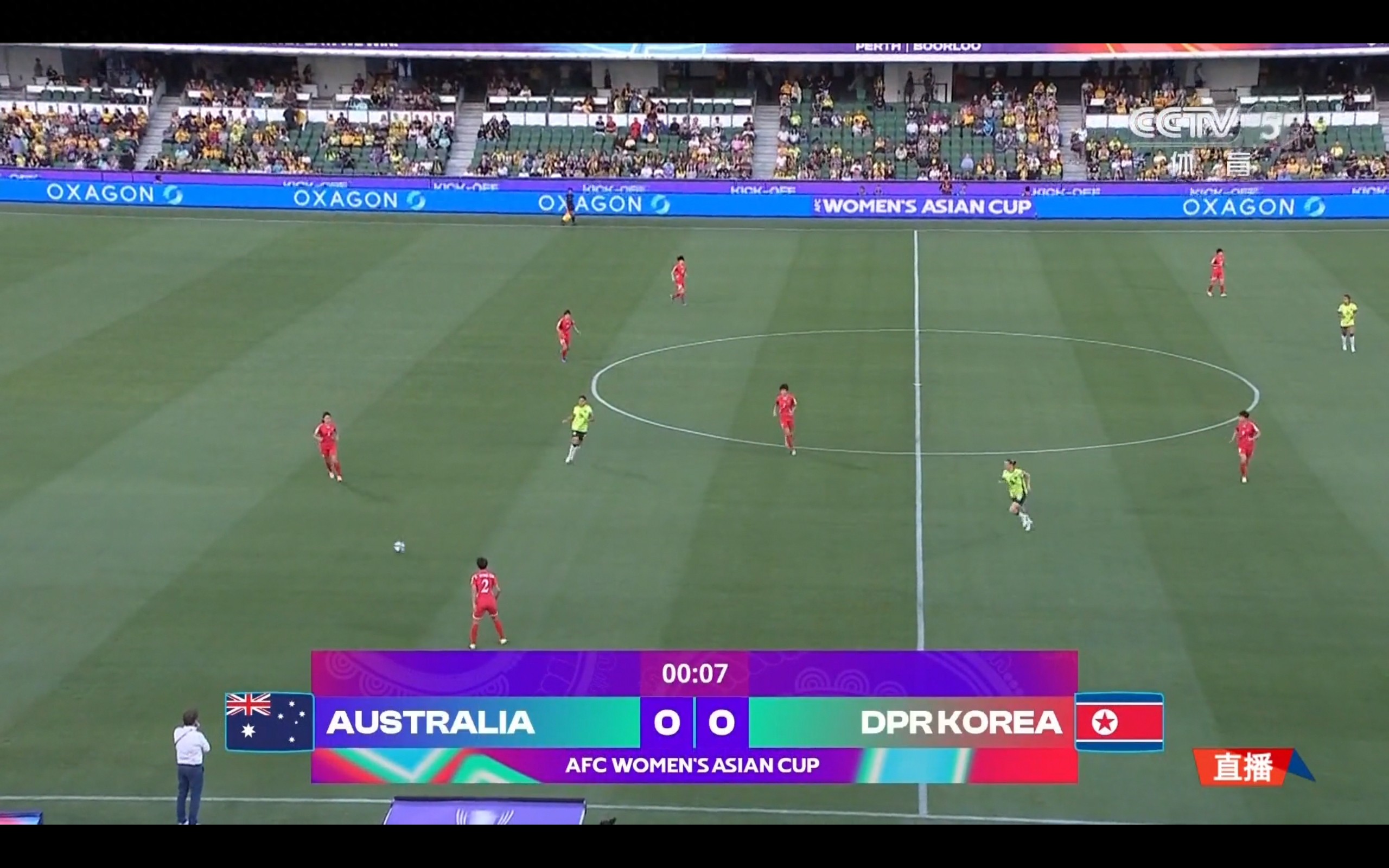 CCTV-5 is currently broadcasting the Women's Asian Cup quarter-final match between Australia and North Korea.