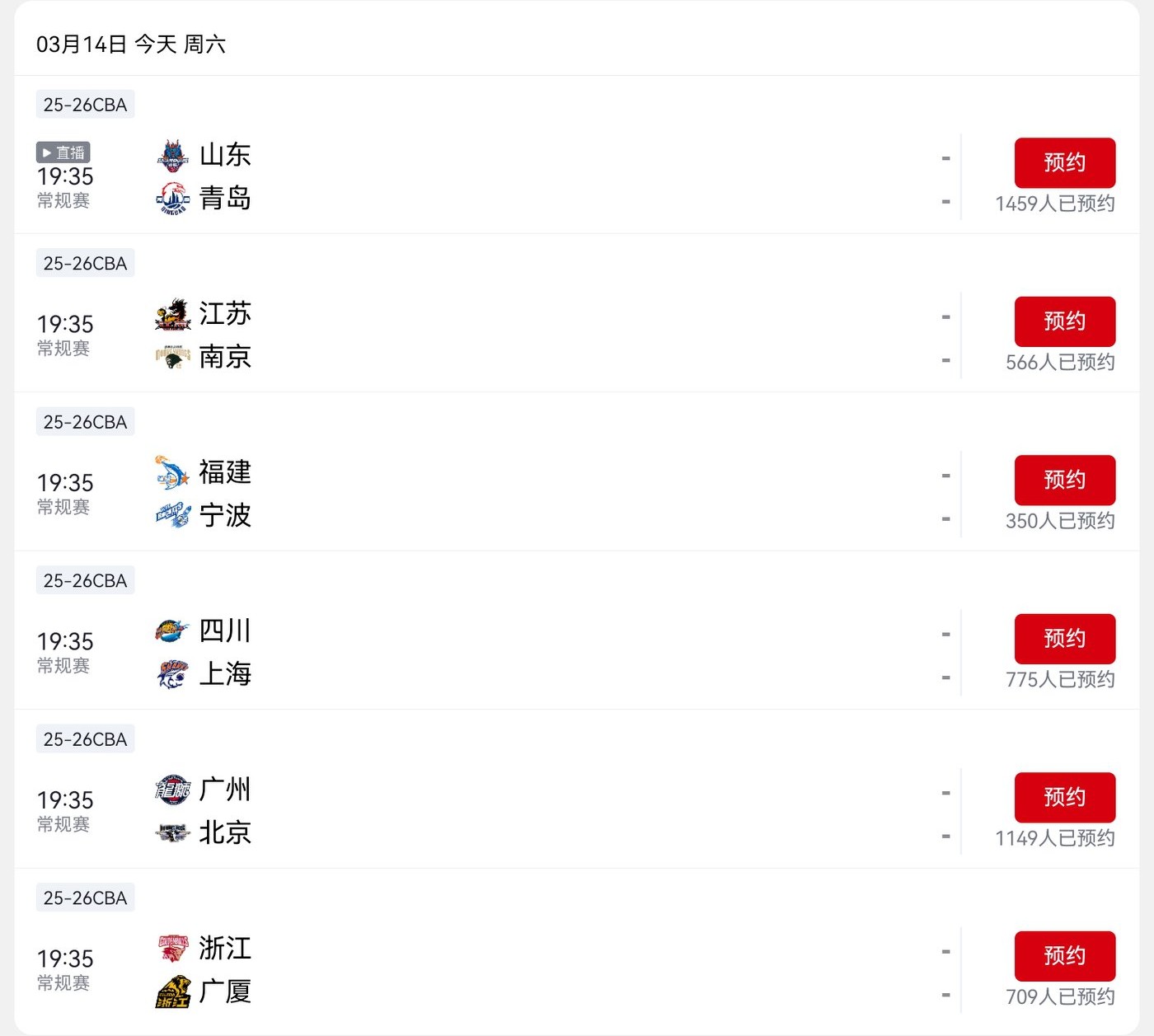 Today, the CBA will conduct six regular-season games; details are shown in the image below.