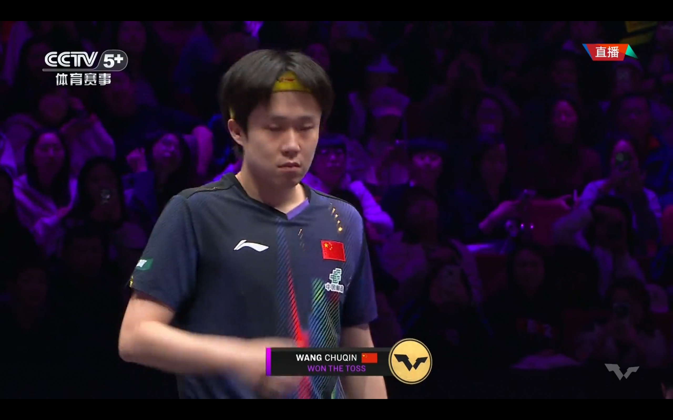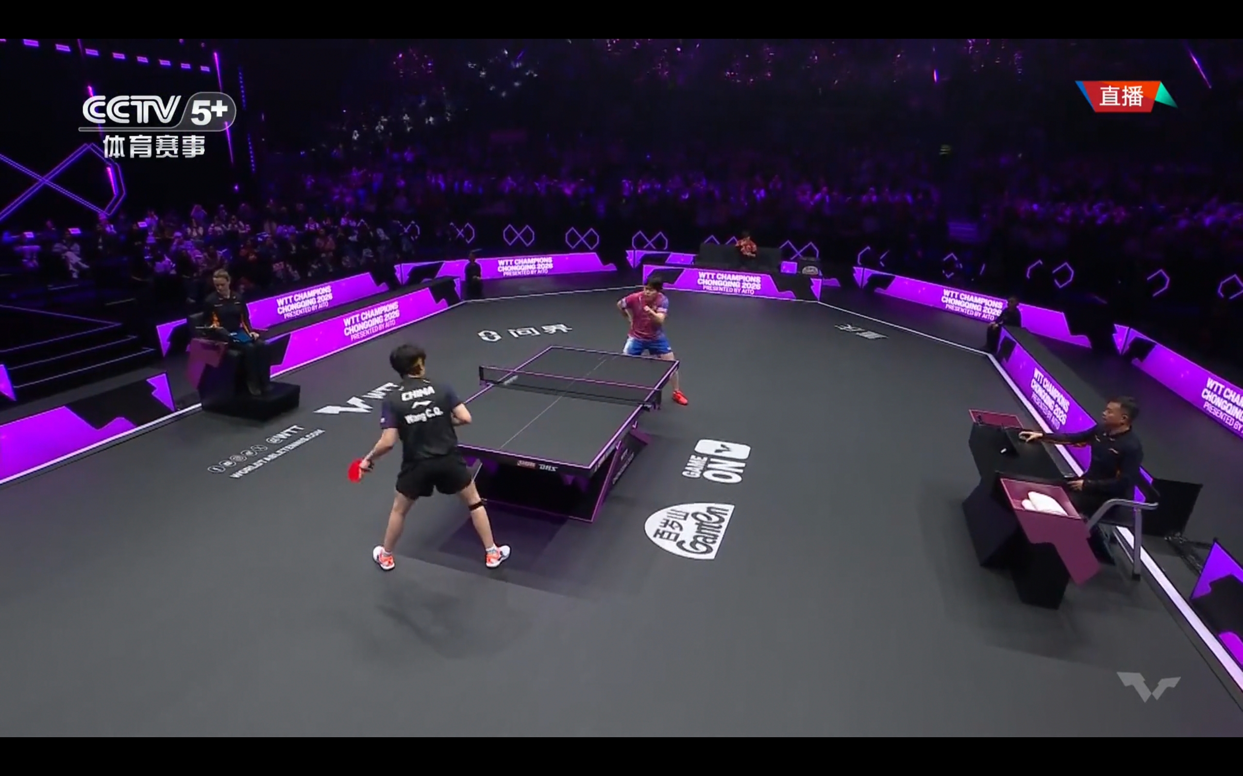CCTV-5+ is currently broadcasting the men's singles quarterfinal match of the WTT Chongqing Championship between Wang Chuqin and Matsushima Teruku.