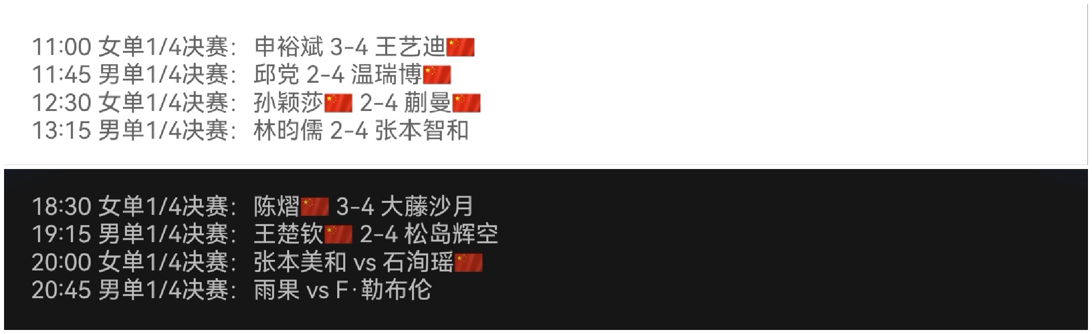 Additionally, the match between Shi Xunyao and Harimoto Miwa has not yet started; it is predicted that Shi Xunyao will lose.