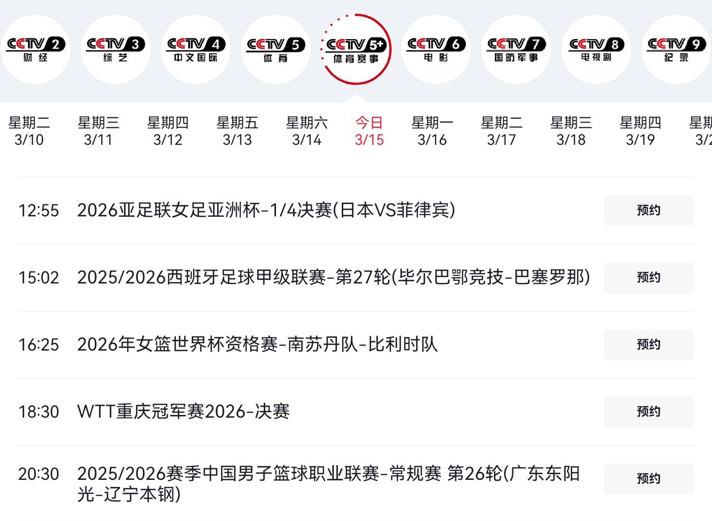 The detailed CCTV-5 live broadcast plan is shown in the image below.