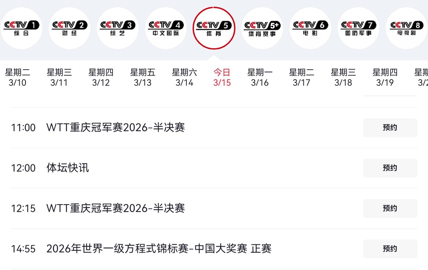 WTT Chongqing Championship schedule today (March 15, 2026): Kuai Man, Wang Yidi, and Wen Ruibo will compete, live on CCTV-5.