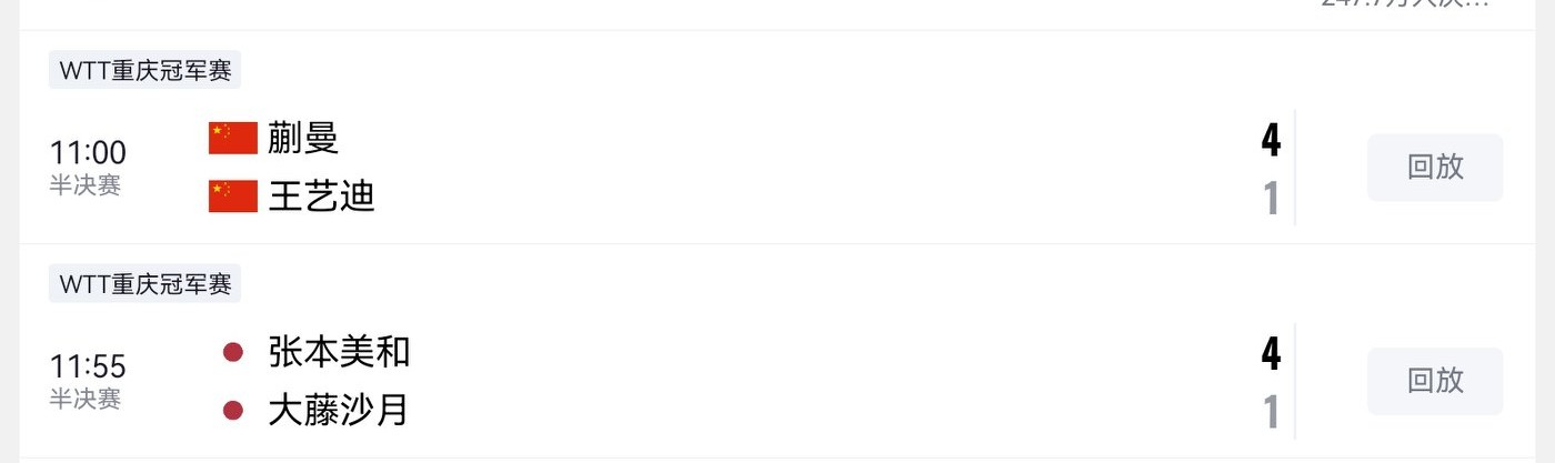 According to the schedule, the two women's singles semifinals have concluded, details as shown in the image below.
