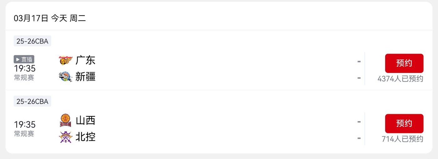 CBA regular season schedule today (March 17, 2026): Guangdong Dongguan Guangsha vs Xinjiang Yinteli, live on CCTV-5.