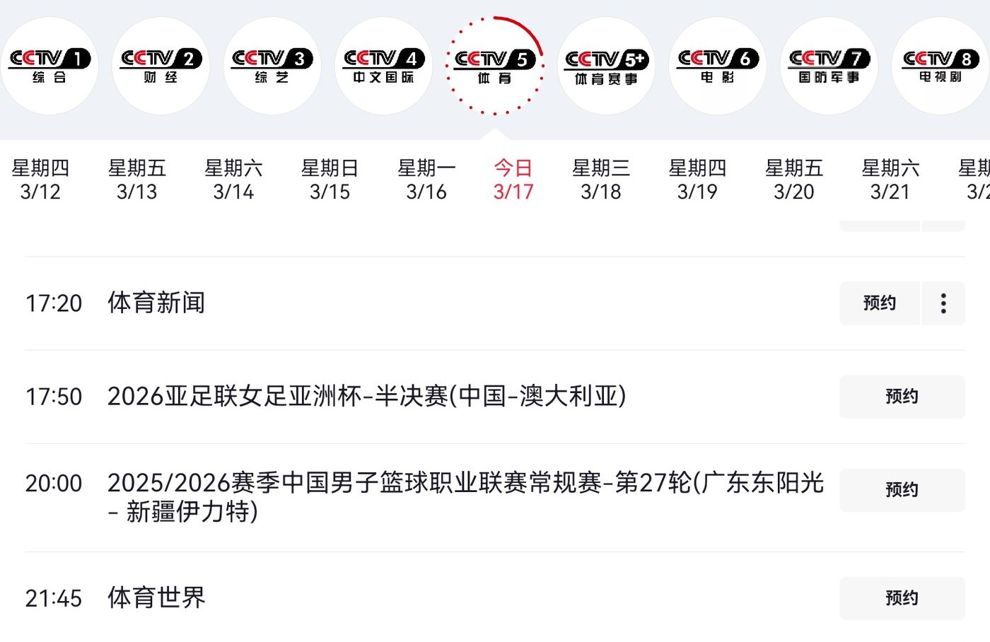CCTV-5 will begin live coverage of this game at 8:00 PM tonight, as the broadcast was delayed due to the Women's Asian Cup football tournament.
