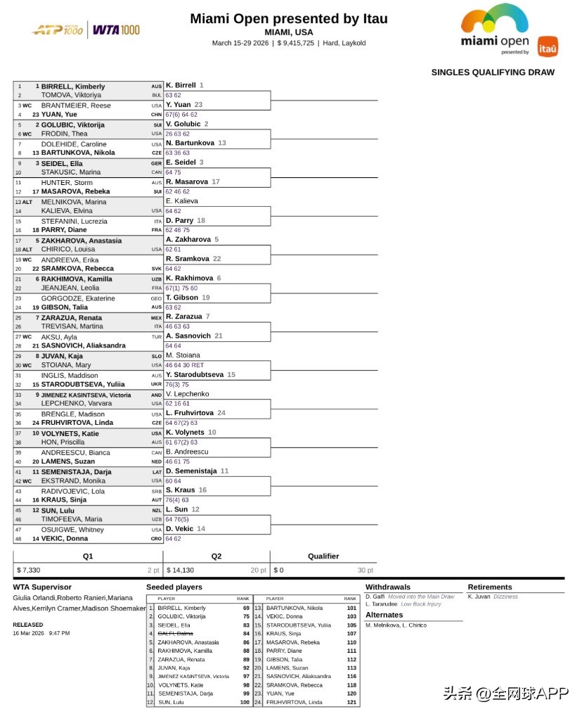 ATP/WTA1000 Miami Qualifiers Draw Updated