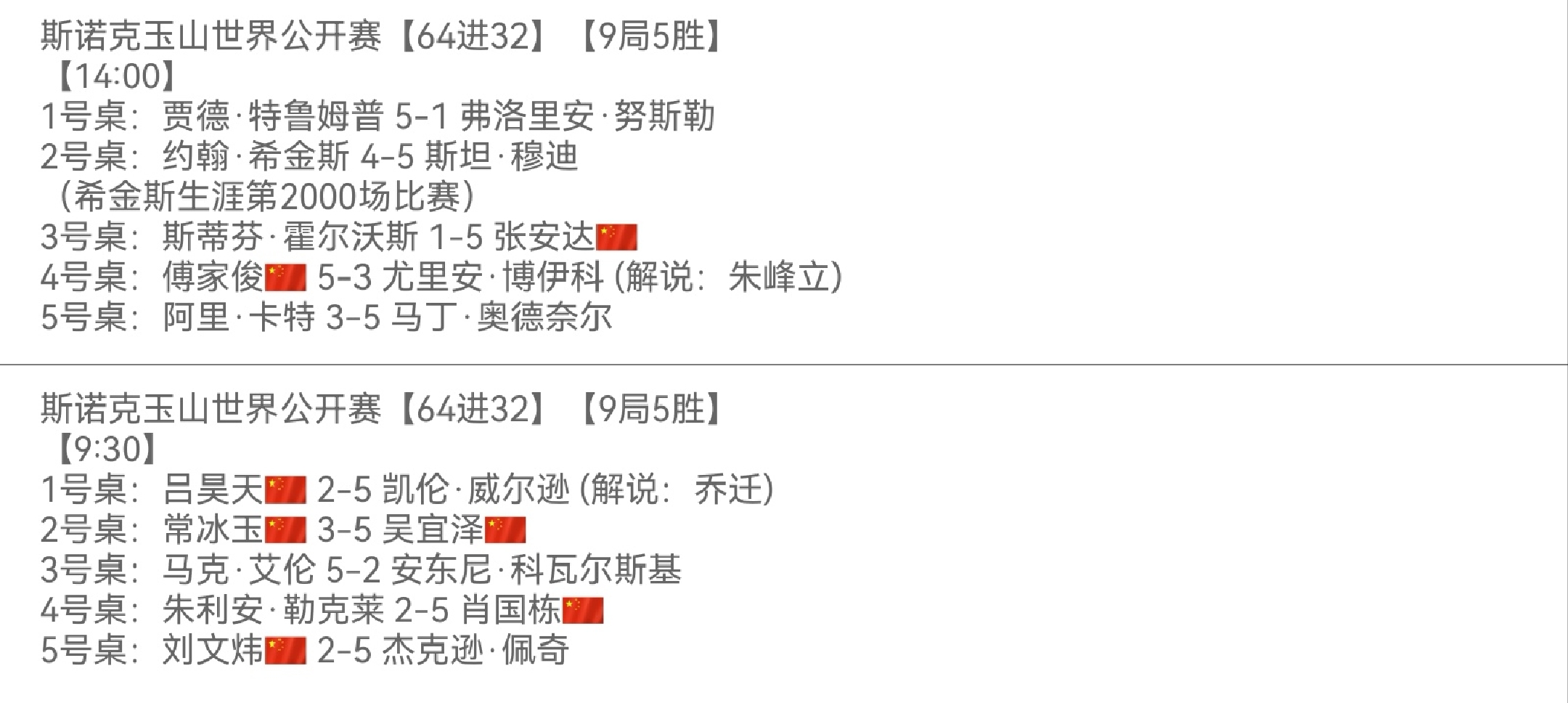 Ali Carter also lost, which is quite disappointing. Could this lead to another scenario where Chinese players dominate the semifinals?