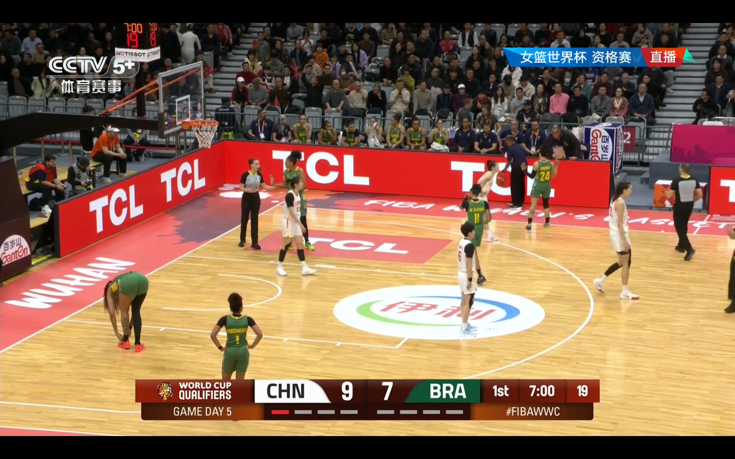CCTV-5+ channel is broadcasting the Women's Basketball World Cup Qualifier match between China and Brazil.