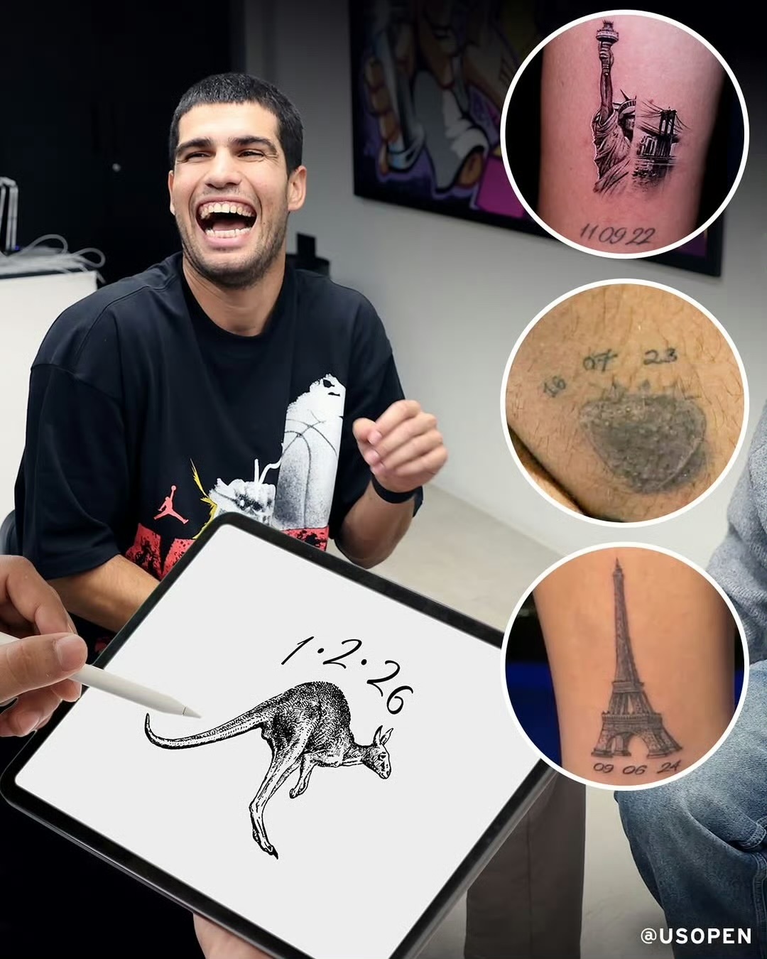 For Alcaraz, using tattoos to etch honors has long become a tradition full of ritual significance. Looking through his body's collection is like reading a condensed personal championship history: