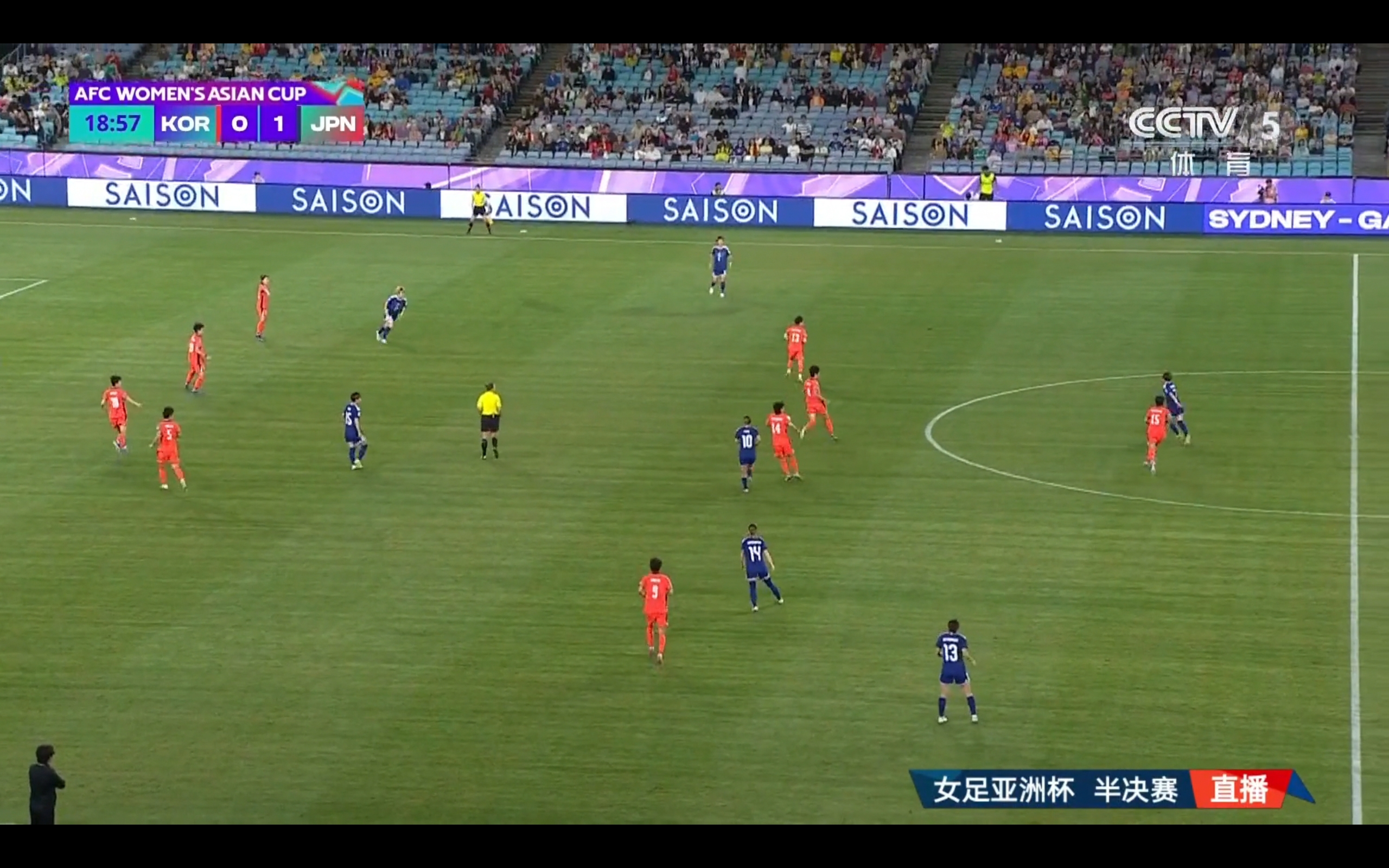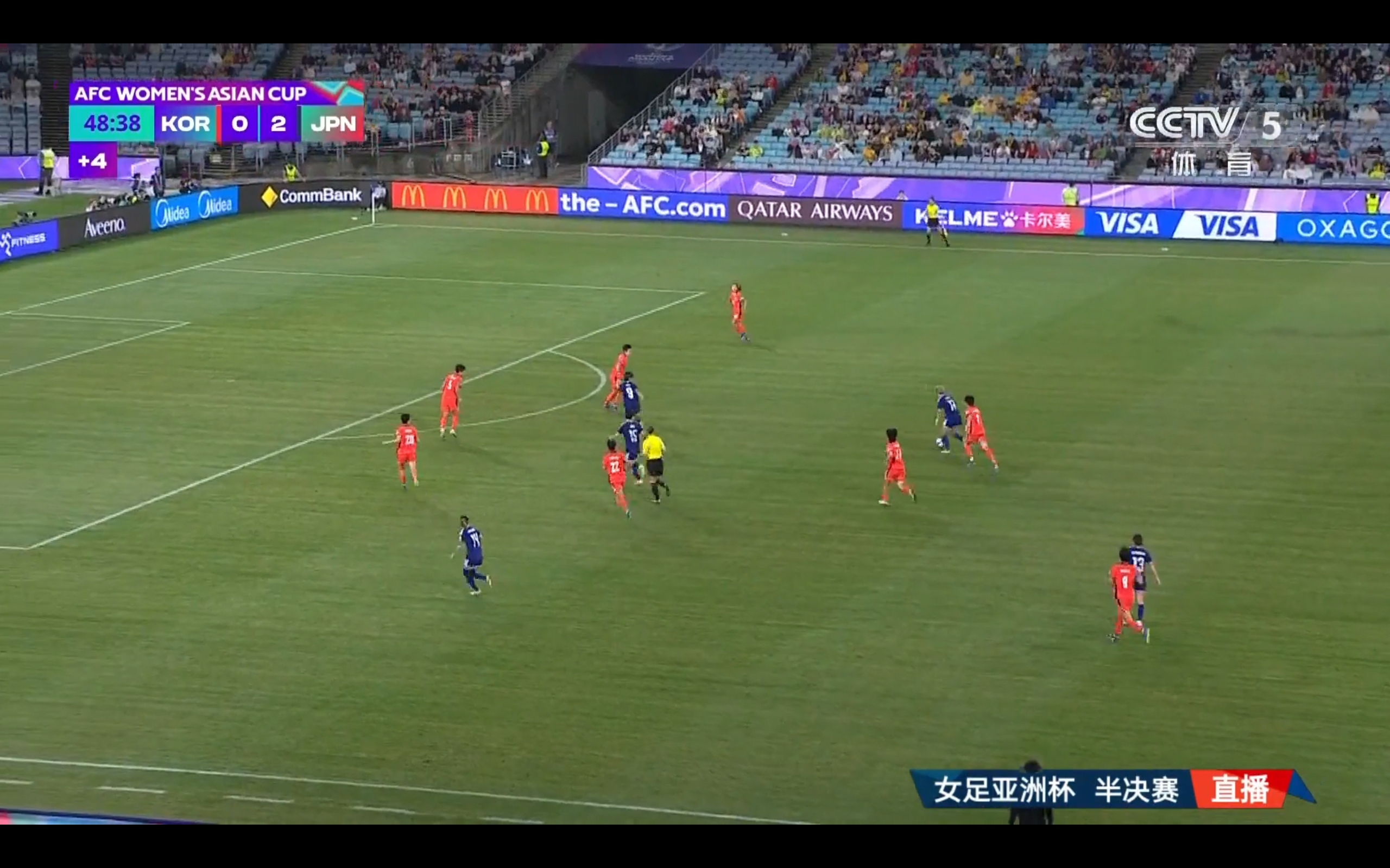 CCTV-5 is broadcasting the Women's Asian Cup semifinal match between Japan and South Korea.