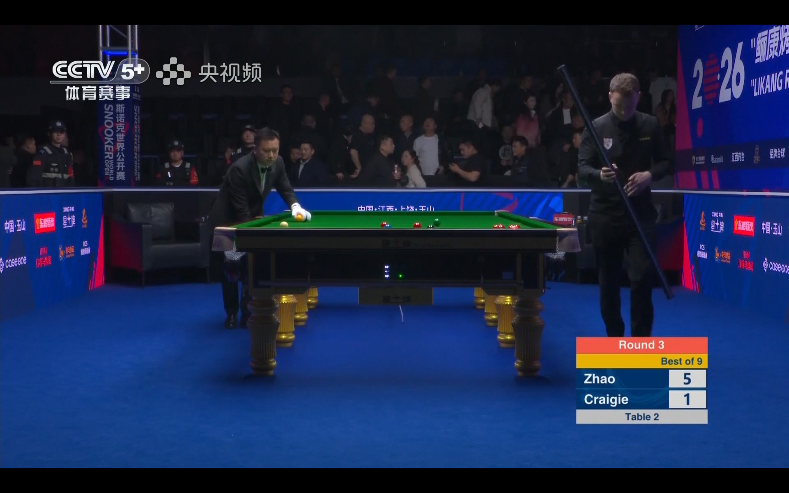 Today, Zhao Xintong performed exceptionally well. His long potting was particularly accurate, and his attacking ability was very strong, almost overwhelming Craigie.