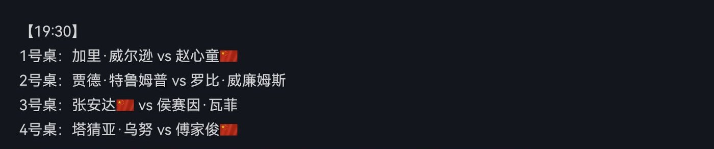1. At 2 PM today, Wu Yize and Zhou Yuelong will compete. Zhou Yuelong faces Mark Allen, while Wu Yize plays against Karen Wilson. Regardless ofhistorical match records or world rankings, both of them are in a disadvantaged position. Therefore, winning tonight will be very difficult for them. I am particularly hopeful that Wu Yize can upset Karen Wilson. What do you all think?