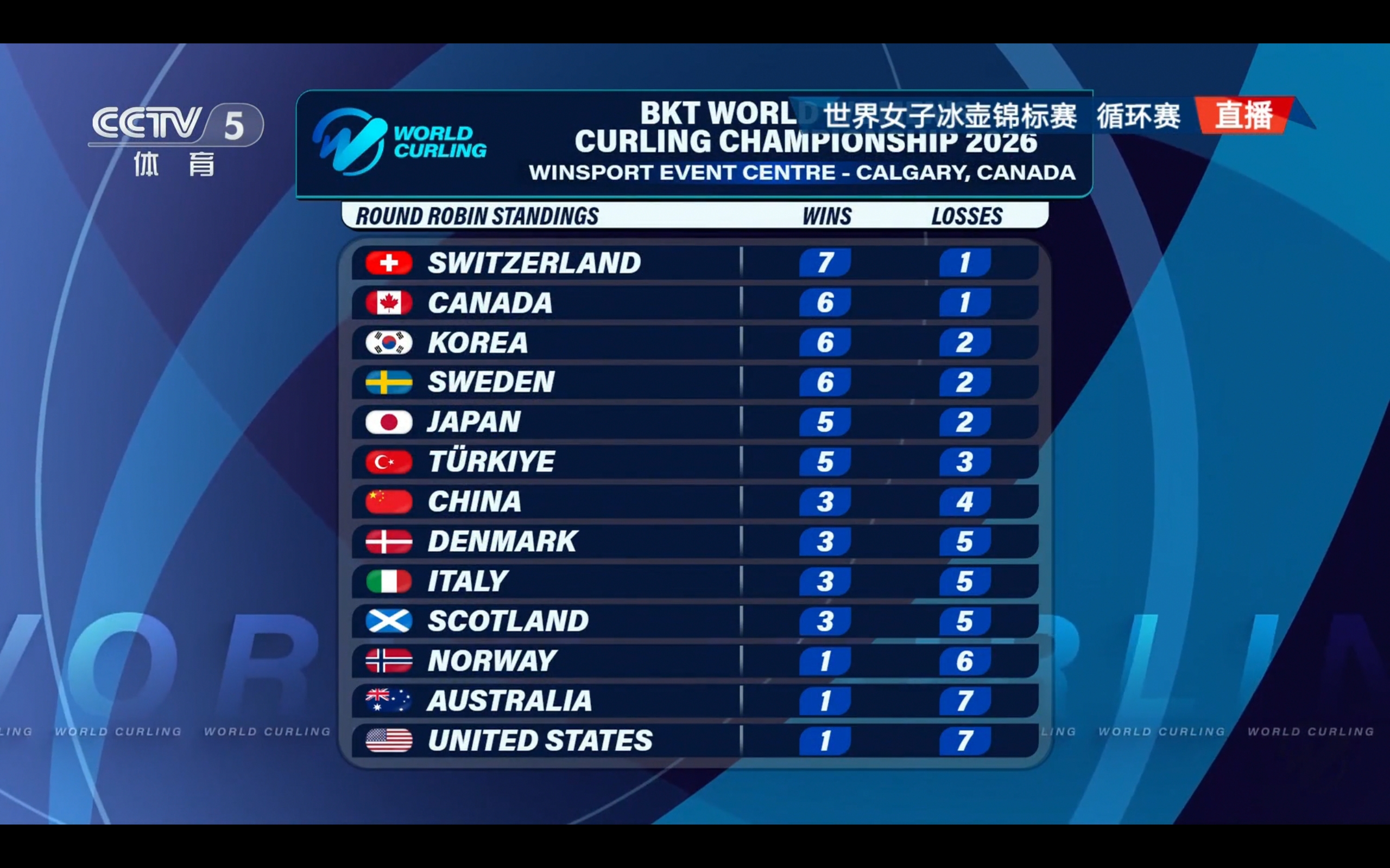 Live broadcast of the Women's Curling World Championship: China vs Australia