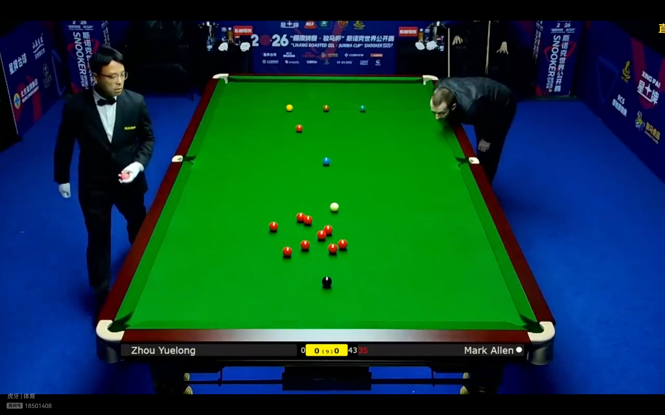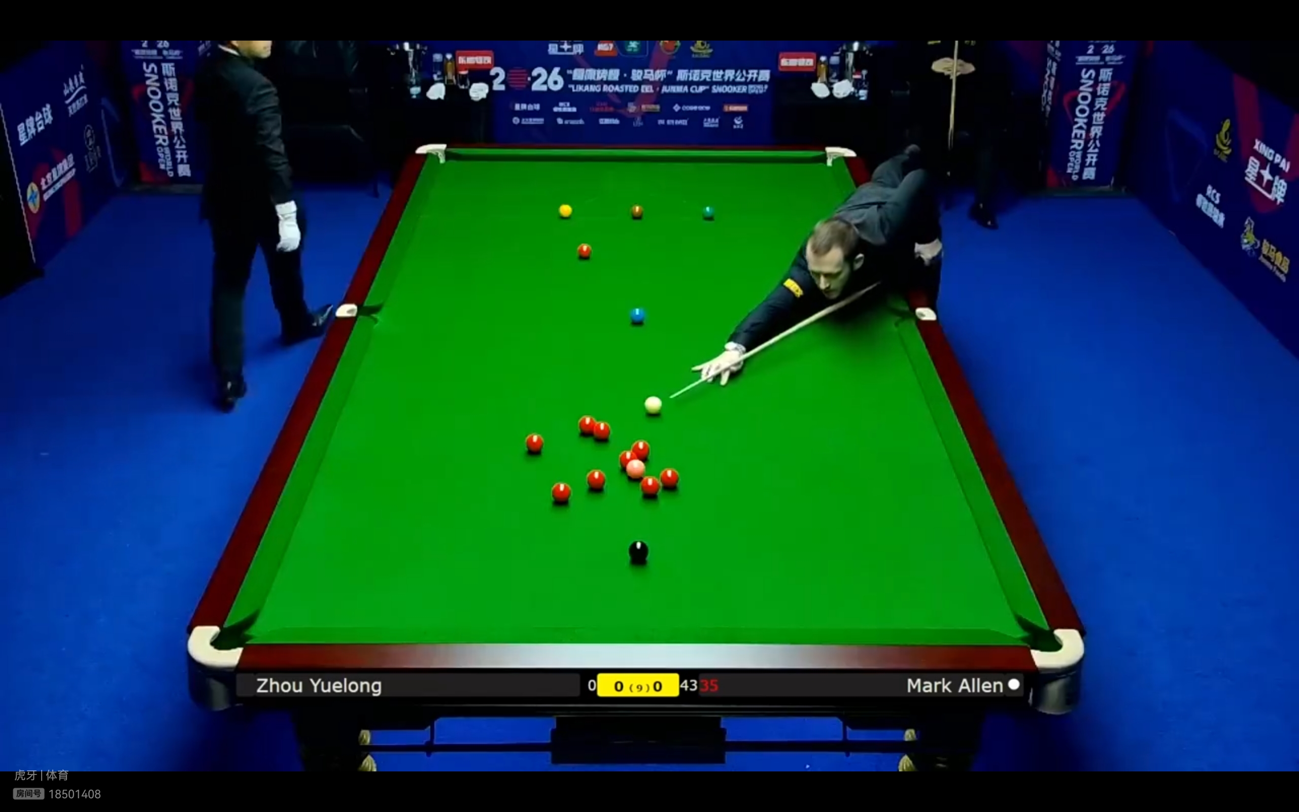 Migu Video and Huya Live are streaming the World Open Snooker quarter-final match between Zhou Yuelong and Mark Allen.