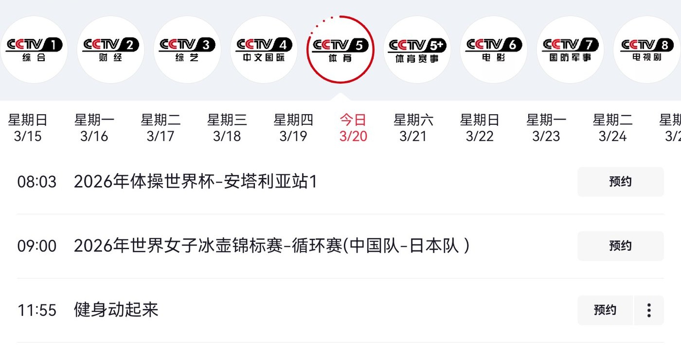 Women's Curling World Championship Schedule Today (March 20, 2026): China has two matches today, namely China vs Japan and China vs Korea, live on CCTV-5.