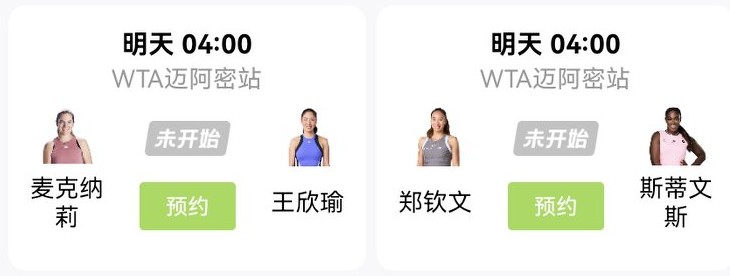 According to the schedule announced by the organizing committee, at 4 a.m. tomorrow, Wang Xinyu will face McNally, and Zheng Qinwen will play against Stephens.