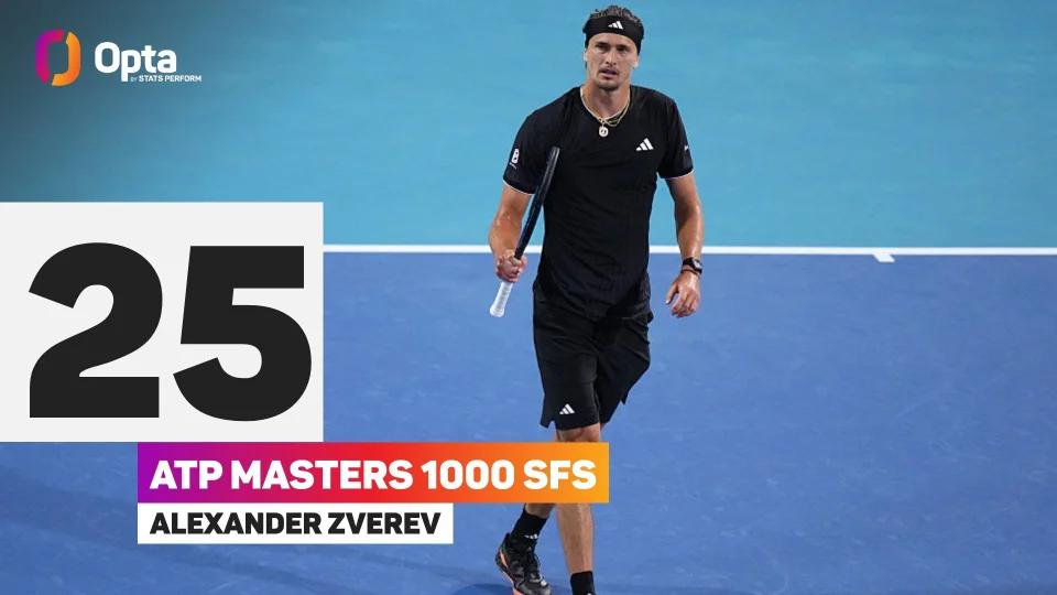 After the match, many discussing the final result found it unbelievable, since Cerundolo's head-to-head record with Zverev was equal—six previous meetings with three wins each. Even if Cerundolo couldn't beat the German star, he shouldn't have been so passive. Unexpectedly, a match predicted to be intense turned into a solo showcase by Zverev, sweeping the Argentine star in just 65 minutes, becoming the first post-90s player to reach 25 Masters semifinals.