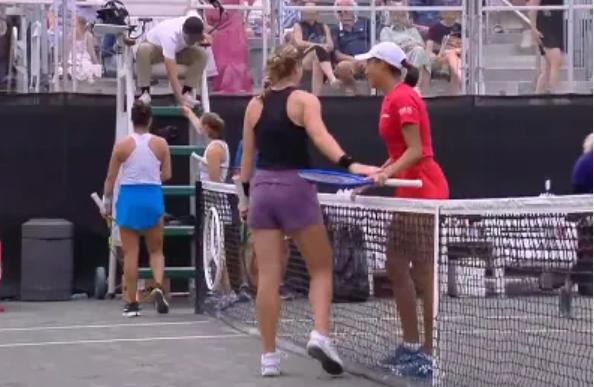 Though pushed to the brink, Zhang Shuai's pair showed明显 better反击状态 in the second set compared to the first, but in气势 and默契配合, they still couldn't match the American本土组合. Despite全力拼搏, Krauske and McNally ended the match 7-5, announcing the elimination of the top-seeded pair.