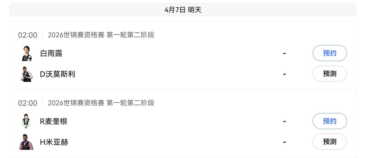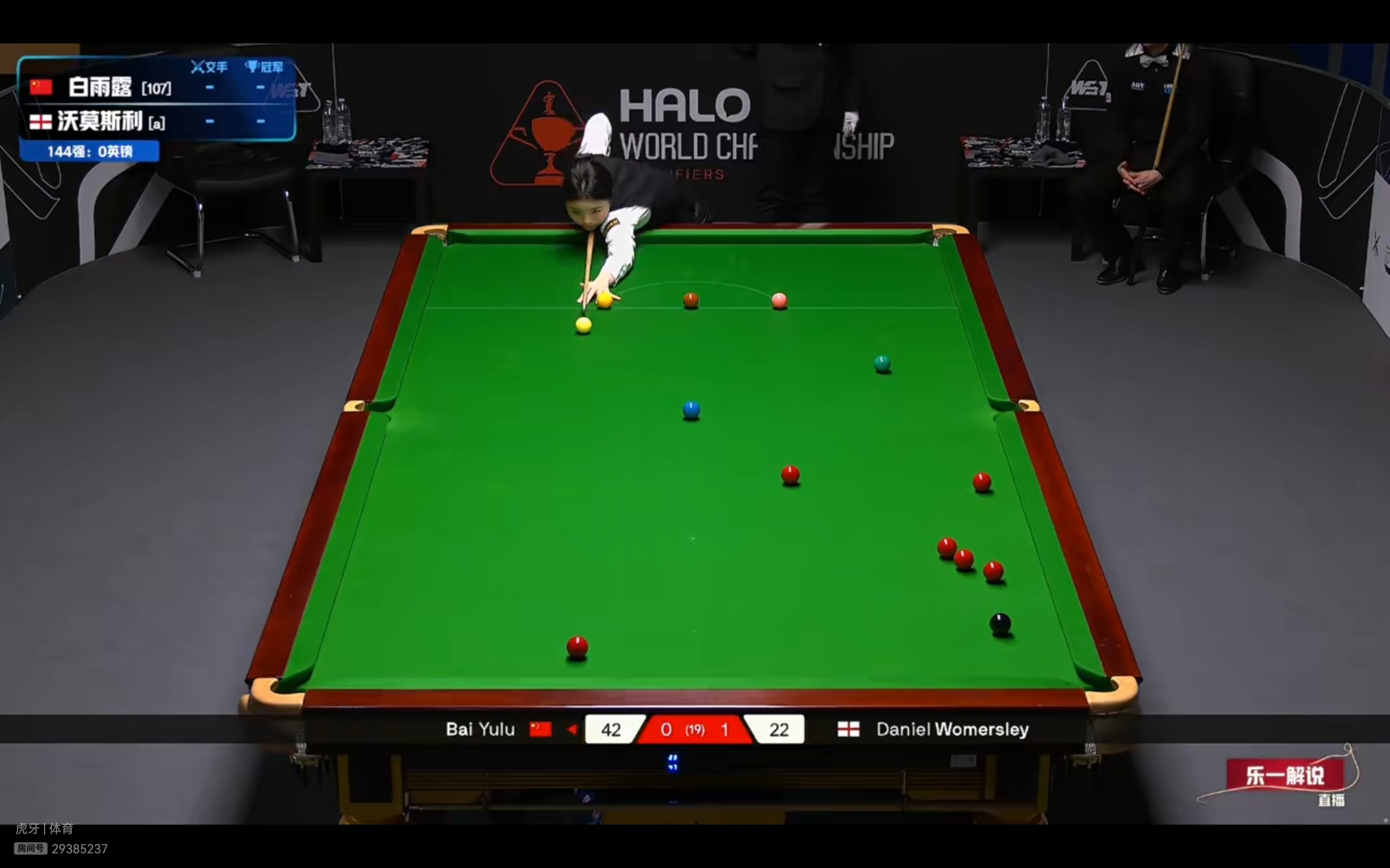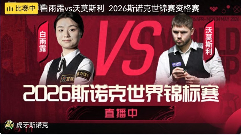 Migu Video and Huya Live are broadcasting the Snooker World Championship qualifier match between Bai Yulu and Wormosley.
