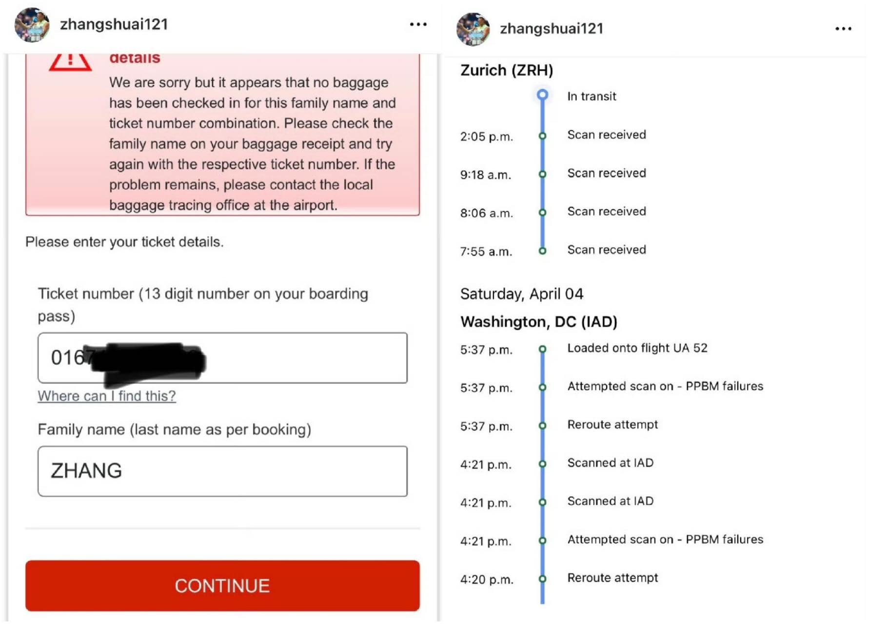 然而,張帥隨後直接在評論區反擊:「你們能不能專業一點?你們就是這樣對待客戶的嗎?我根本沒收到任何回覆。我跟你們說過,你們網站很難建立行李延誤報告,因為我只有透過美聯航才拿到的票號……」