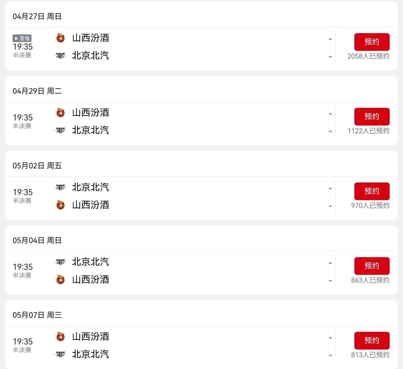 This Sunday, 2025.4.27, the semi-finals will start, and the schedule has been confirmed, as shown below.
