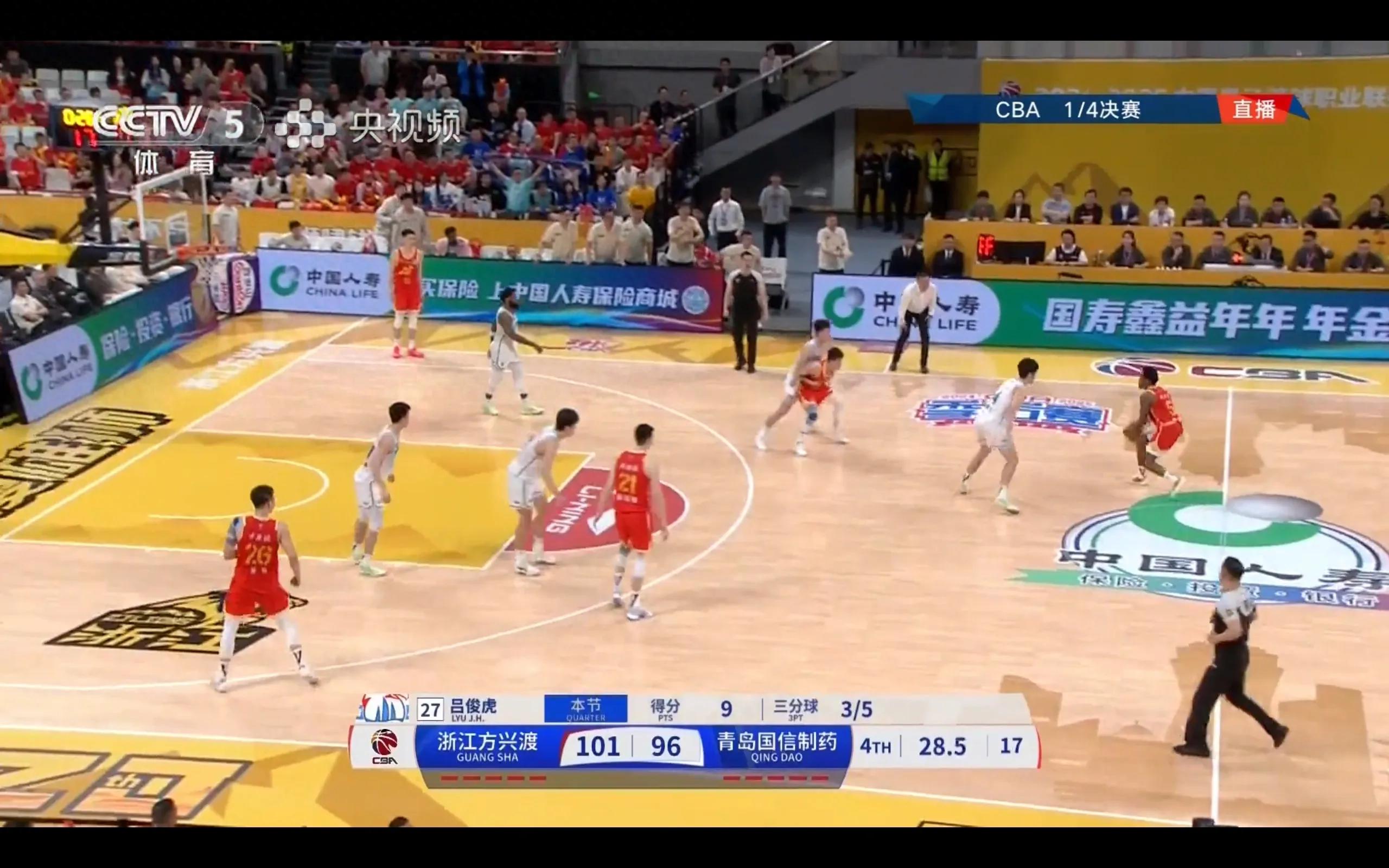 In the just-concluded CBA playoffs G5 battle, Zhejiang Fangxingdu 101-96 Qingdao Guoxin Pharmaceutical, has a total score of 3-2 to advance to the semifinals.