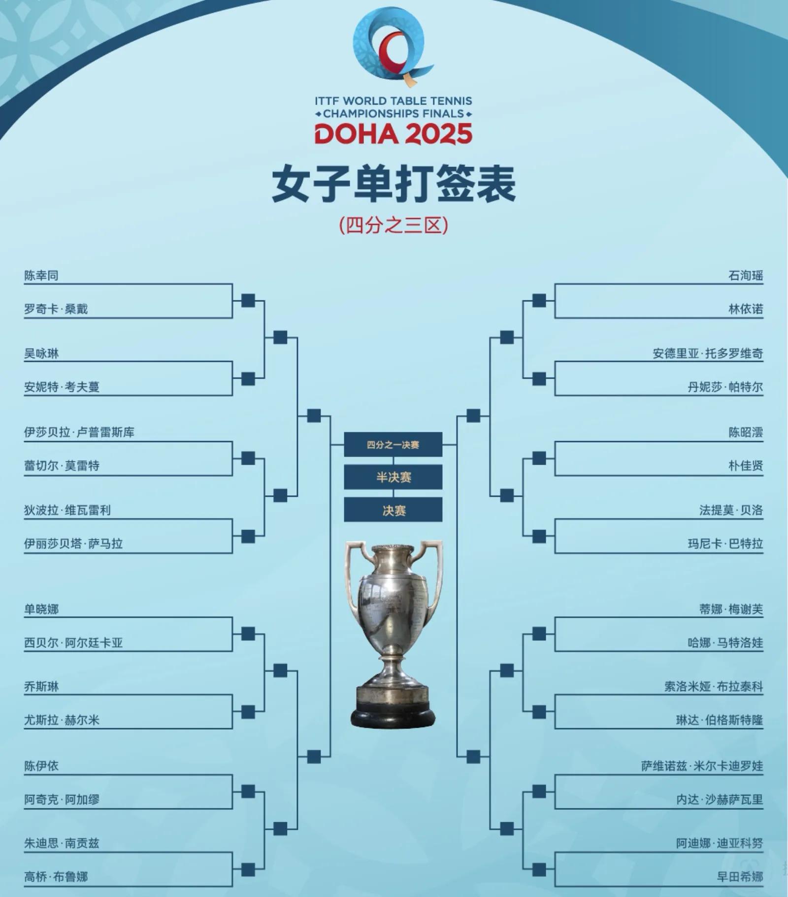 The 3/4 zone is held by Chen Xingtong and Shi Xunyao, and it is expected that Chen Xingtong will defeat all opponents to advance to the semifinals.