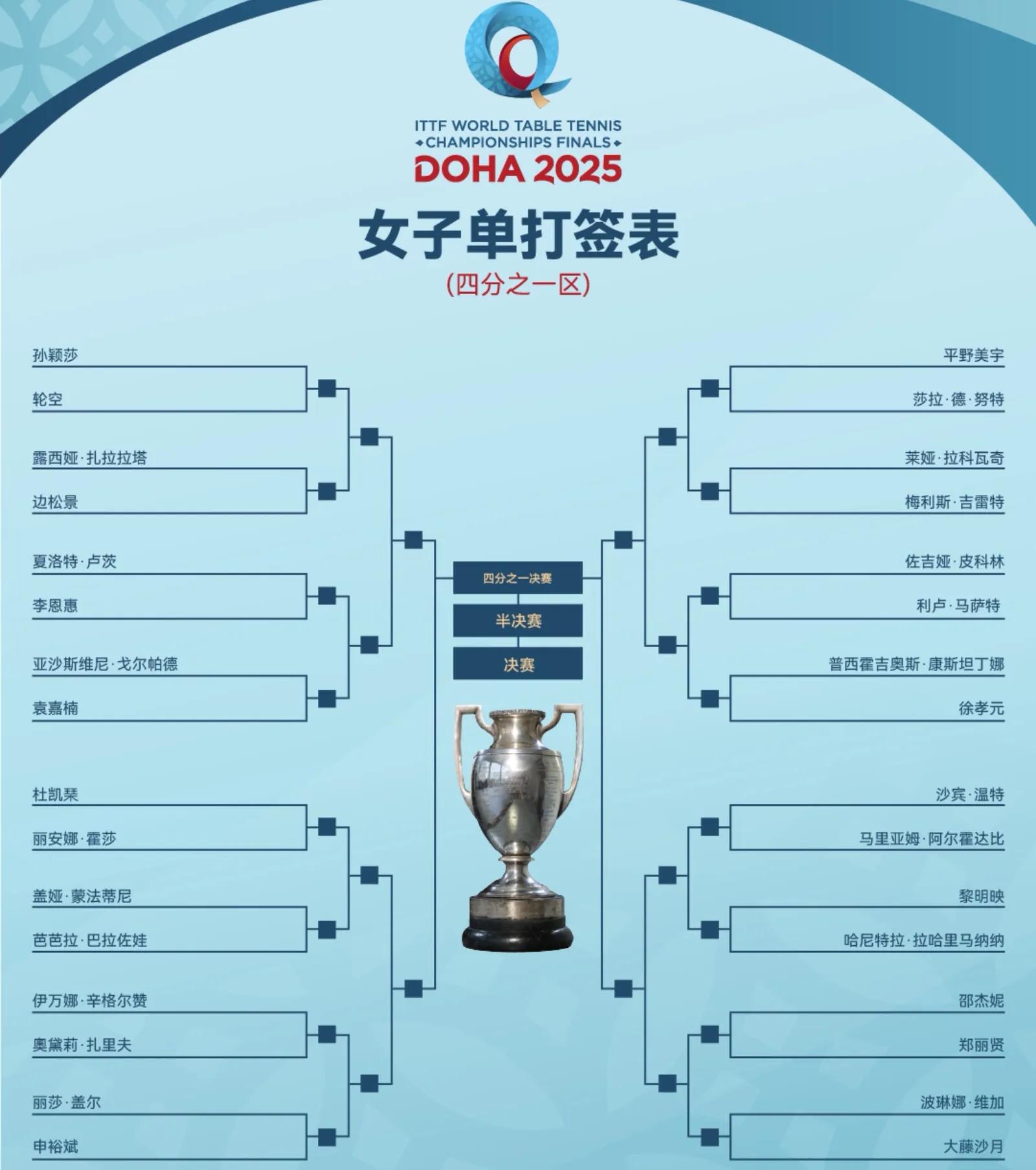 The table tennis Doha World Table Tennis Championships women's singles signing list has been confirmed, Sun Yingsha, Wang Manyu, Wang Yidi, Chen Xingtong and Shi Xunyao played, the details are as follows.