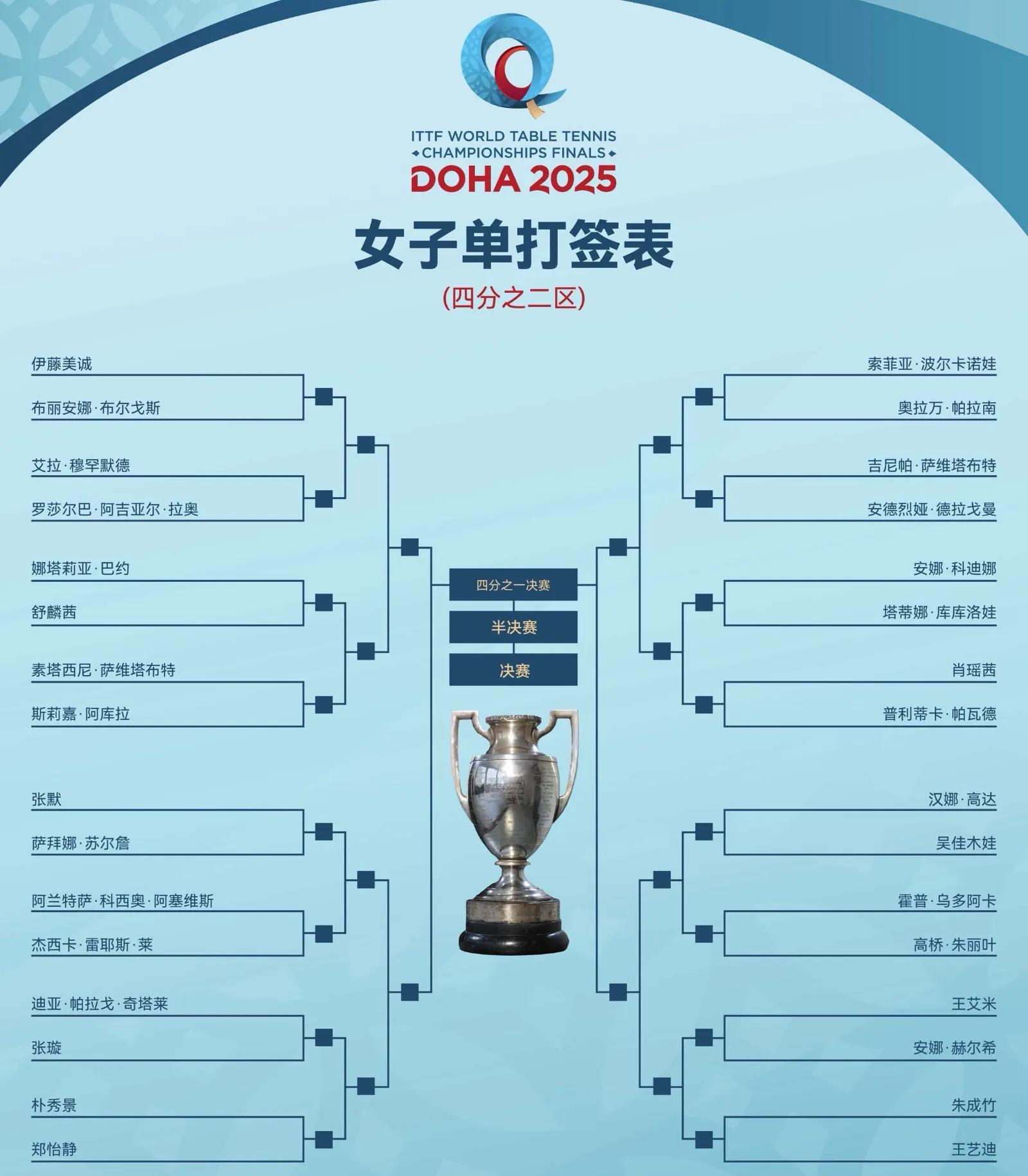 Wang Yidi sticks to the 2/4 area, with many opponents, and expects Wang Yidi to defeat Ito Misei, Zheng Yijing and other major opponents and advance to the semifinals.
