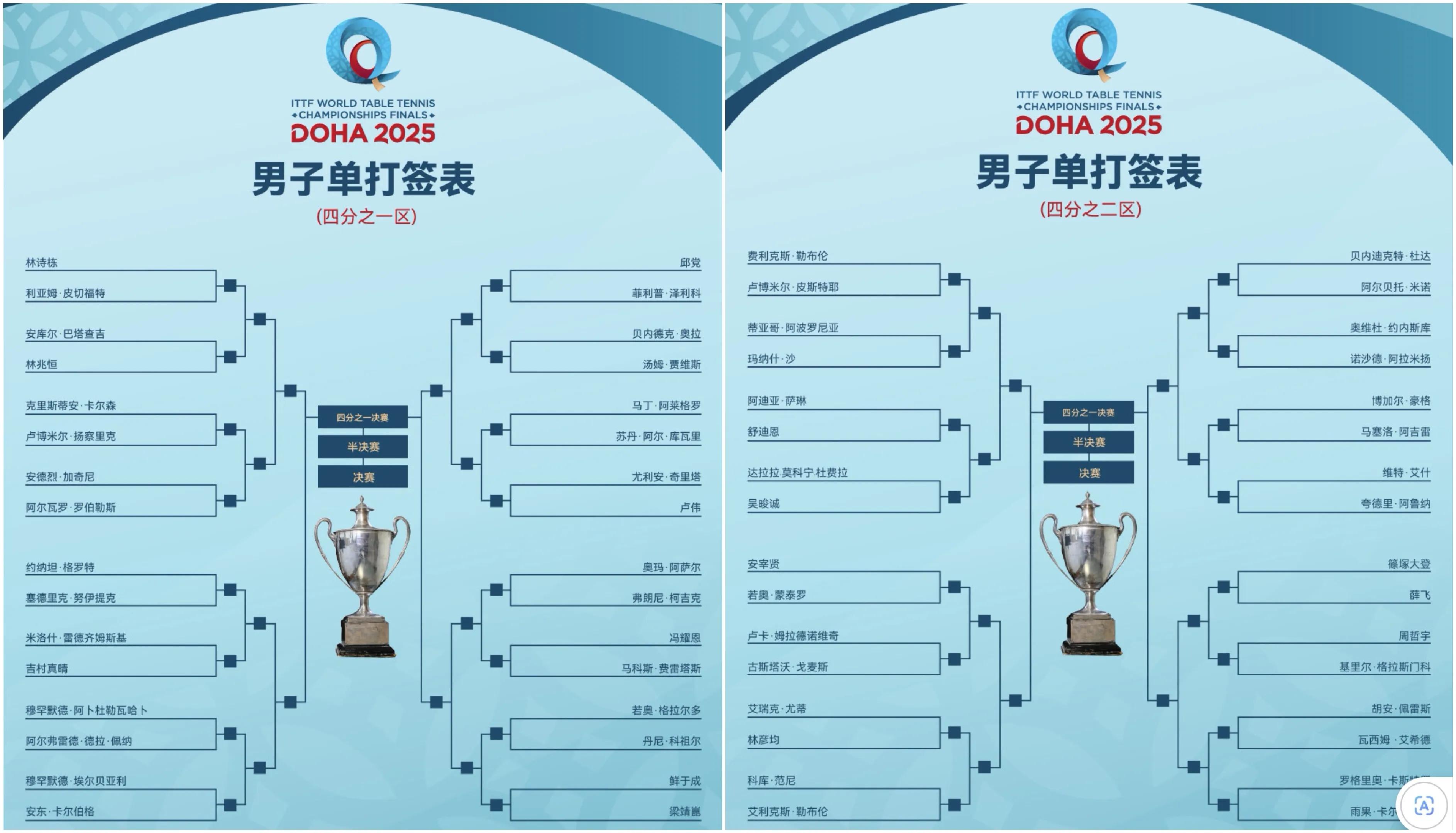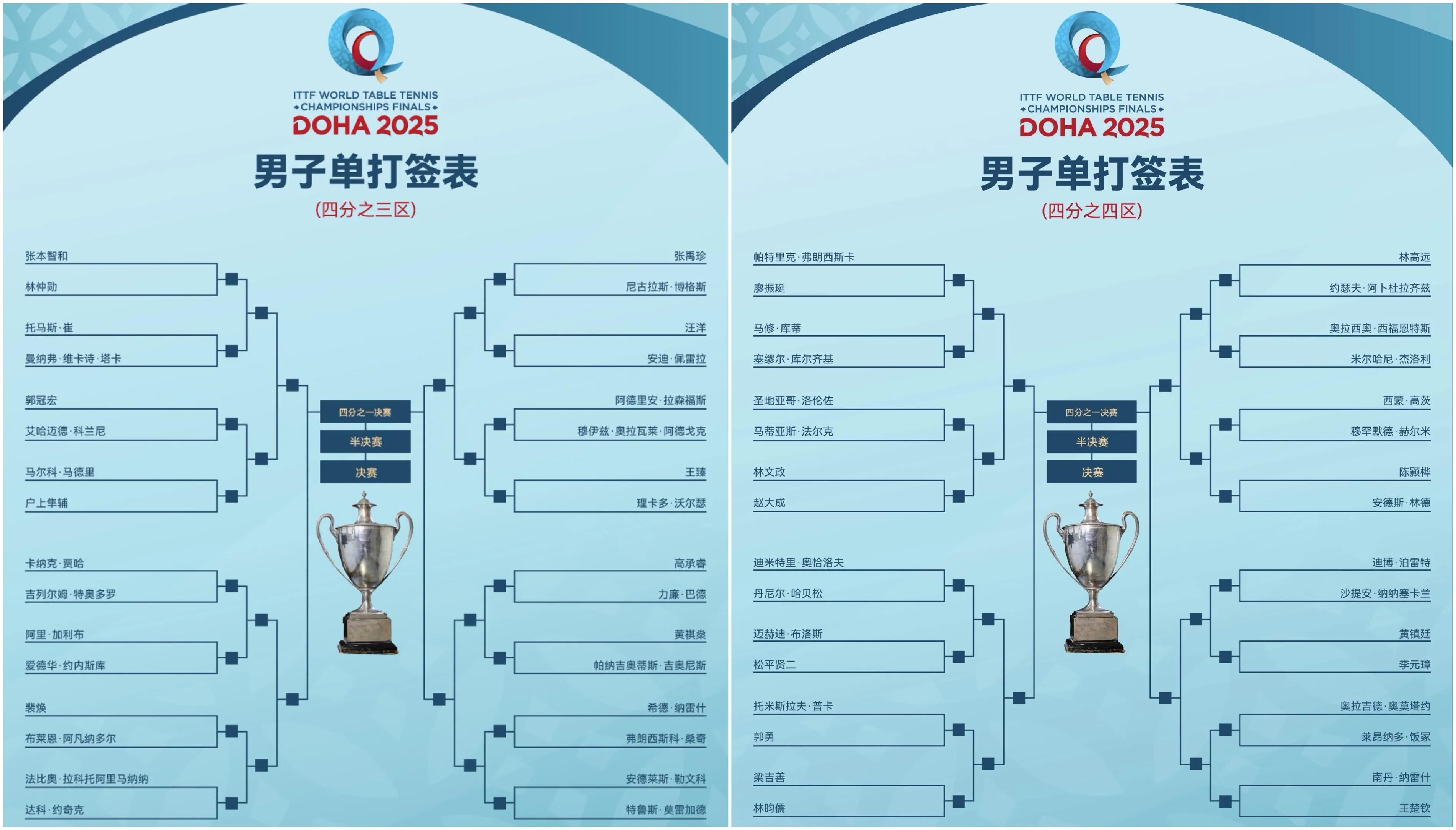 The men's singles signing list for the World Table Tennis Championships in Doha has been confirmed, and national table tennis players Wang Chuqin, Lin Shidong, Liang Jingkun, Lin Gaoyuan and Xue Fei will play, the details are as follows.
