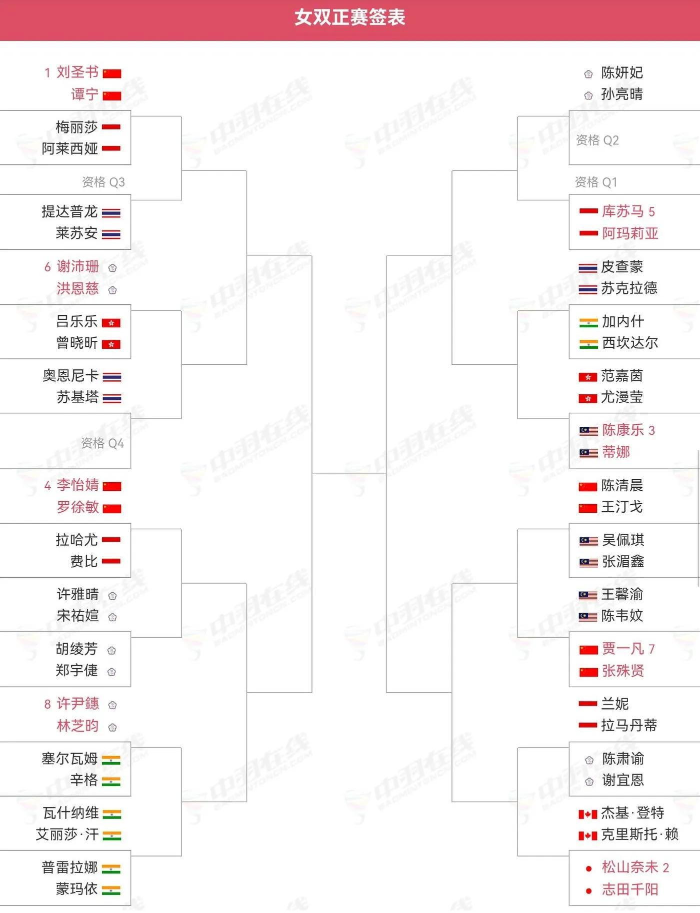 The Women's Doubles signing table has been confirmed, as shown below. Liu Shengshu/Tan Ning, Li Yijing/Luo Xumin, Chen Qingchen/Wang Dingge, Jia Yifan/Zhang Shuxian played.