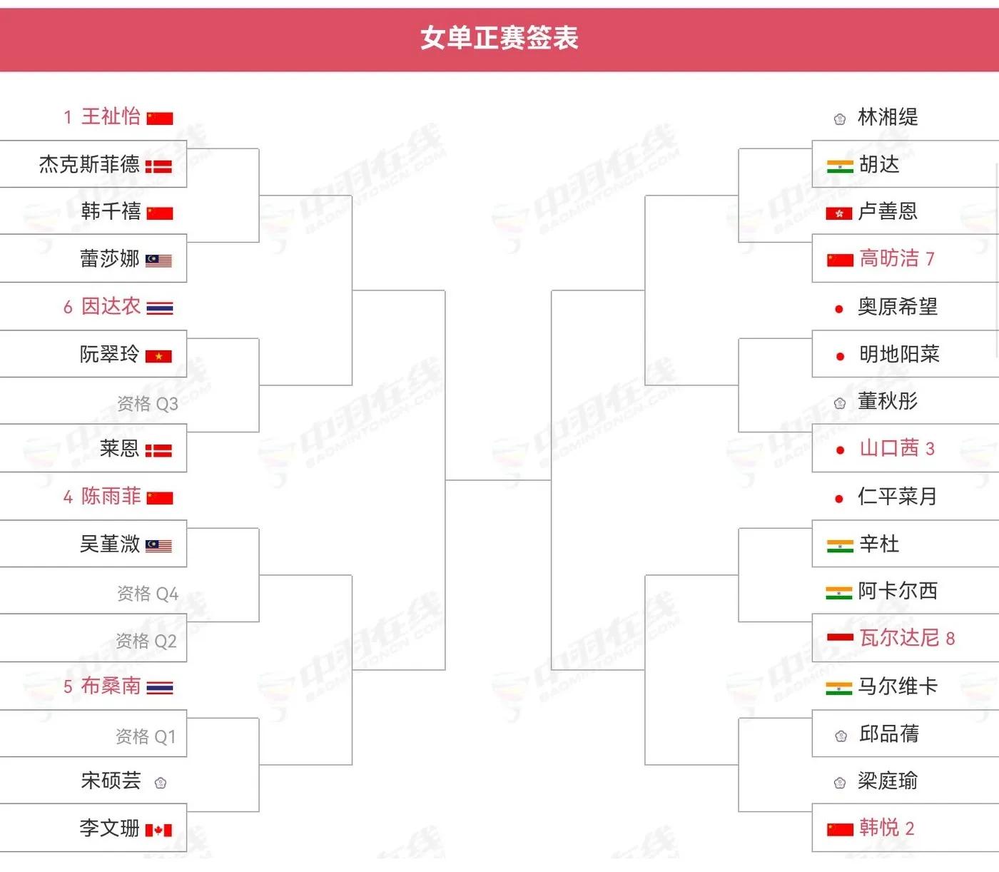 The women's singles signing table is shown below, Wang Zhiyi, Han Qianxi, Chen Yufei, Han Yue and Gao Fangjie played.