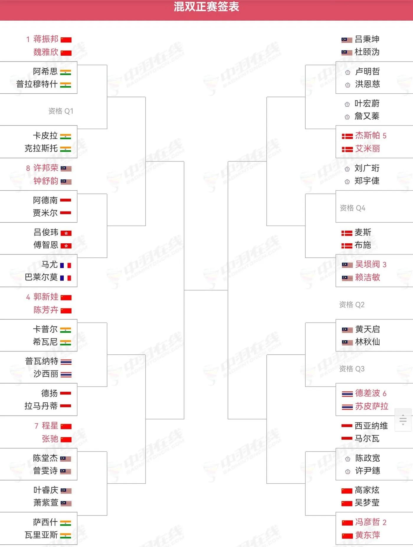 The Mixed Doubles signing table has been confirmed, as shown below. Jiang Zhenbang/Wei Yaxin, Guo Xinwa/Chen Fanghui, Cheng Xing/Zhang Chi, Gao Jiaxuan/Wu Mengying, Huang Dongping/Feng Yanzhe played.