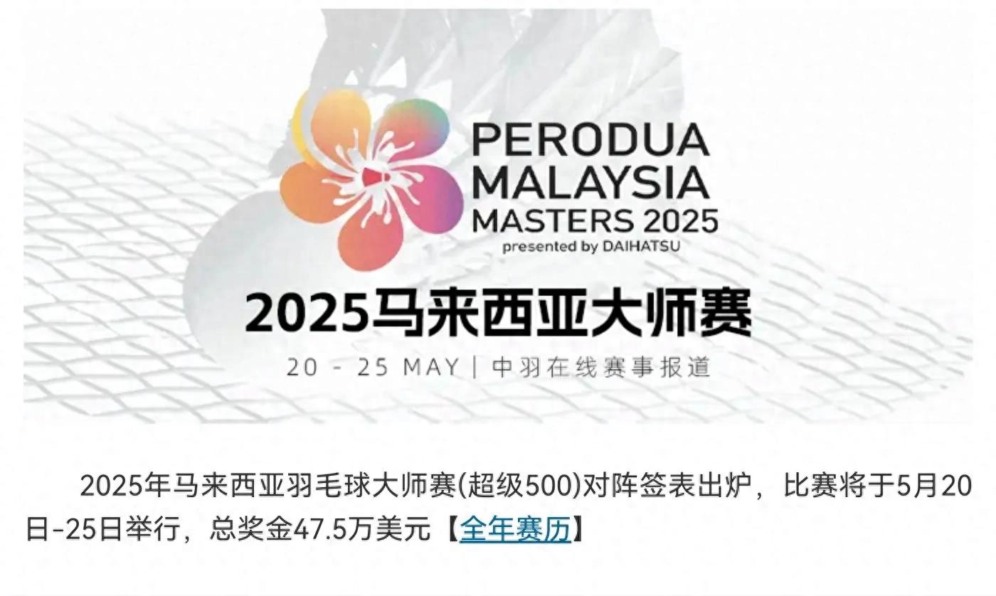 The badminton Malaysia Masters draw has been confirmed, and tomorrow 2025.5.20 will start the tournament, details are as follows.