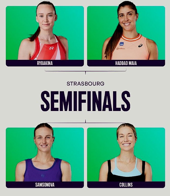 Women's Field: WTA 500 Strasbourg ended the singles quarterfinals last night Beijing time, and each of the semi-finals has its own place. Fourth seed Rybakina of Kazakhstan defeated Poland's second sister Linette 7-5 6-3 to face ninth seed and Brazil's first sister Maia, who defeated second seed and rising American star Navarro in three sets. The other two semi-final spots were won by Russian Samsonova and American Collins.