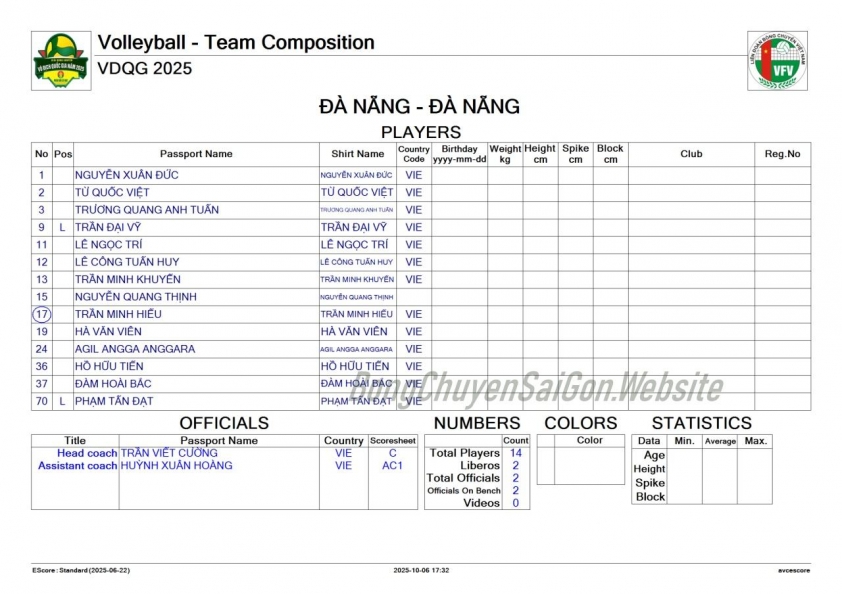 (Volleyball results) - Sanest Khanh Hoa skillfully beat Da Nang and moved up to 4th position in the 2025 National Volleyball Championship rankings, ahead of their main rival LPB Ninh Binh by one game played.