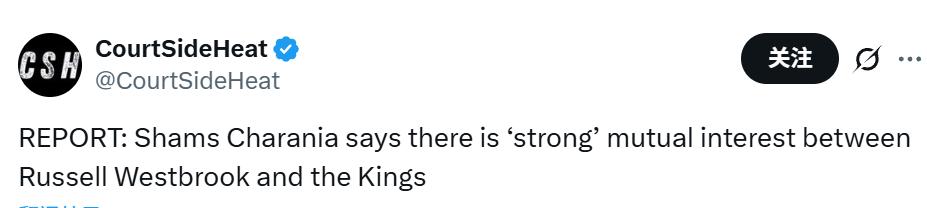 Shams在節目中說道:「拉塞爾-威斯布魯克與薩克拉門托國王隊之間存在明顯的雙向興趣。國王隊正需要一位替補控衛。上賽季他們的替補得分和替補助攻兩項數據均排名聯盟倒數第二。威斯布魯克的加盟正好能改善這一狀況,且他與國王隊管理層及球員關係良好。」