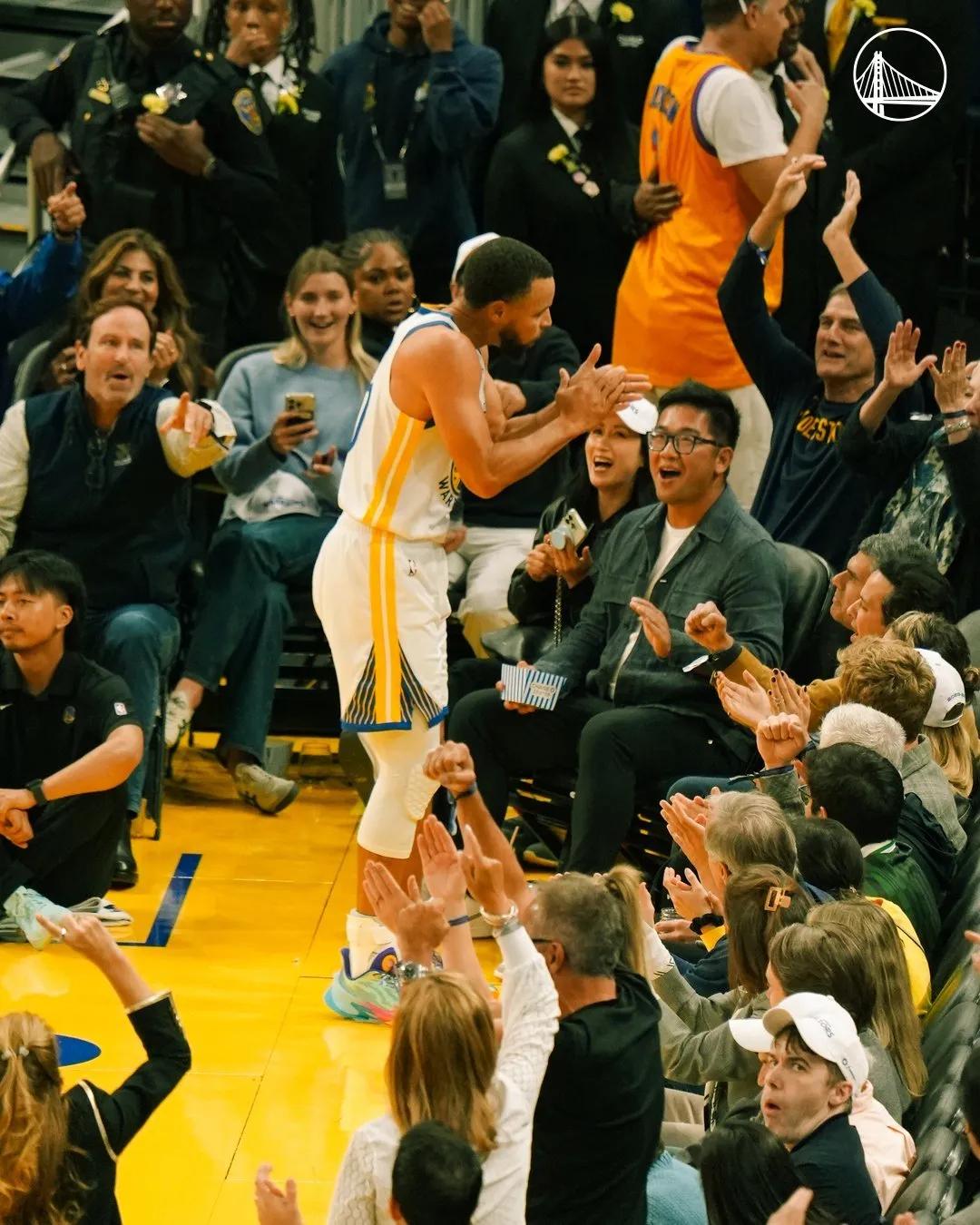 庫里一投即中,超遠三分將比分扳平,全場沸騰,勇士球迷從絕望轉為瘋狂。這才是賽季第二場比賽,庫里便展現如此神跡。不僅是這記絕平三分,勇士最後五分鐘從107分飆升至120分的13分,全由庫里包辦。