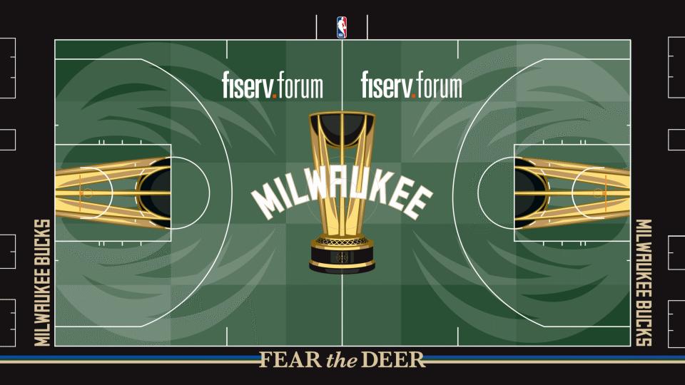 隱藏細節:在密爾瓦基雄鹿隊和洛杉磯湖人隊主場球場中場區,獎盃底座圖案刻有兩隊各自奪得NBA杯的年份。