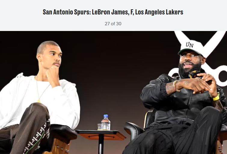 「詹姆斯和文班亞馬的組合擁有多重優勢,無論是在場上表現、訓練習慣、力量訓練還是對對手的研究方面。由文班亞馬、詹姆斯、福克斯、迪倫·哈珀等人組成的核心陣容,今年有望在季後賽走得更遠。」