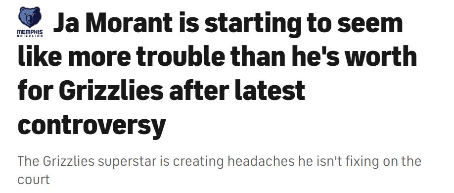 然而,自那以後,情況顯然大變。麻煩日益增多,傷病也越來越頻繁。如今已是莫蘭特的第七個賽季,自灰熊選中他以來,他已缺席超過三分之一常規賽。他在媒體前也有一些令人遺憾的時刻。事實上,他在西部並不「順遂」。場外問題也不少。2022年時,我們根本無法想像他會因多次槍械相關事件遭停賽。