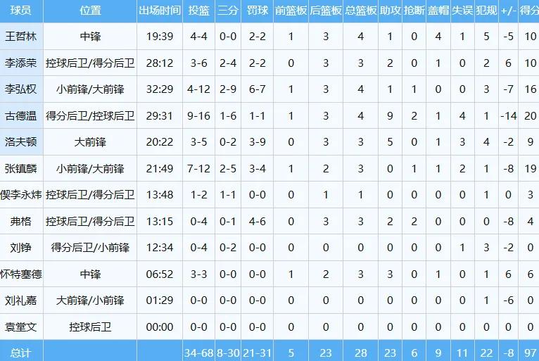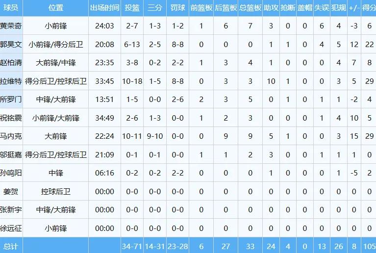 對陣上海隊的比賽中,郭昊文因犯規困擾僅上場20分鐘,依然貢獻22分,而他上一場對陣廣東隊時狂砍42分6籃板8助攻,兩場合計得分達64分,目前在本土球員中狀態最為火熱,本賽季合同年迎來爆發期。