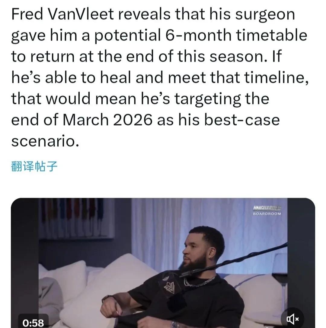 幸運的是,去年九月意外遭遇右膝前十字韌帶(ACL)撕裂的范弗利特,有望本賽季復出,他本人先前表示若康復順利並按計劃完成復健,最佳回歸時間將鎖定在今年三月底。