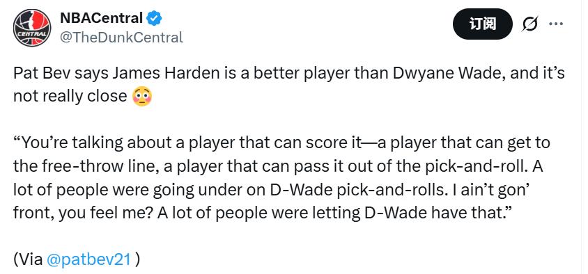 「韋德關鍵球強不強?絕對強。有時候我們確實見過韋德比哈登更關鍵、更絕殺的時刻。但要說誰是更好的球員——哈登是比韋德更強的球員。」