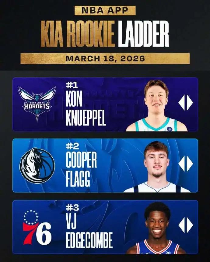 Both his individual statistics and team performance have surged, keeping Knepper consistently at the top of the rookie rankings, surpassing the "American Son," the 2025 draft's top pick, Flag. Flag has played 64 games this season so far, averaging 33.8 minutes per game, scoring 20.3 points, 6.6 rebounds, and 4.5 assists per game, with shooting percentages of 46.7%, 27.8%, and 81.2%. The Mavericks, with a record of 24 wins and 52 losses, have completely missed the playoffs.