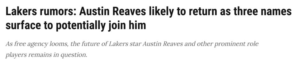 On April 4 Beijing time, ClutchPoints reporter Siegel reported that Reaves will not leave the Lakers, and additionally, the Lakers urgently need to strengthen their wing/forward line this summer, with three recruitment targets mentioned.