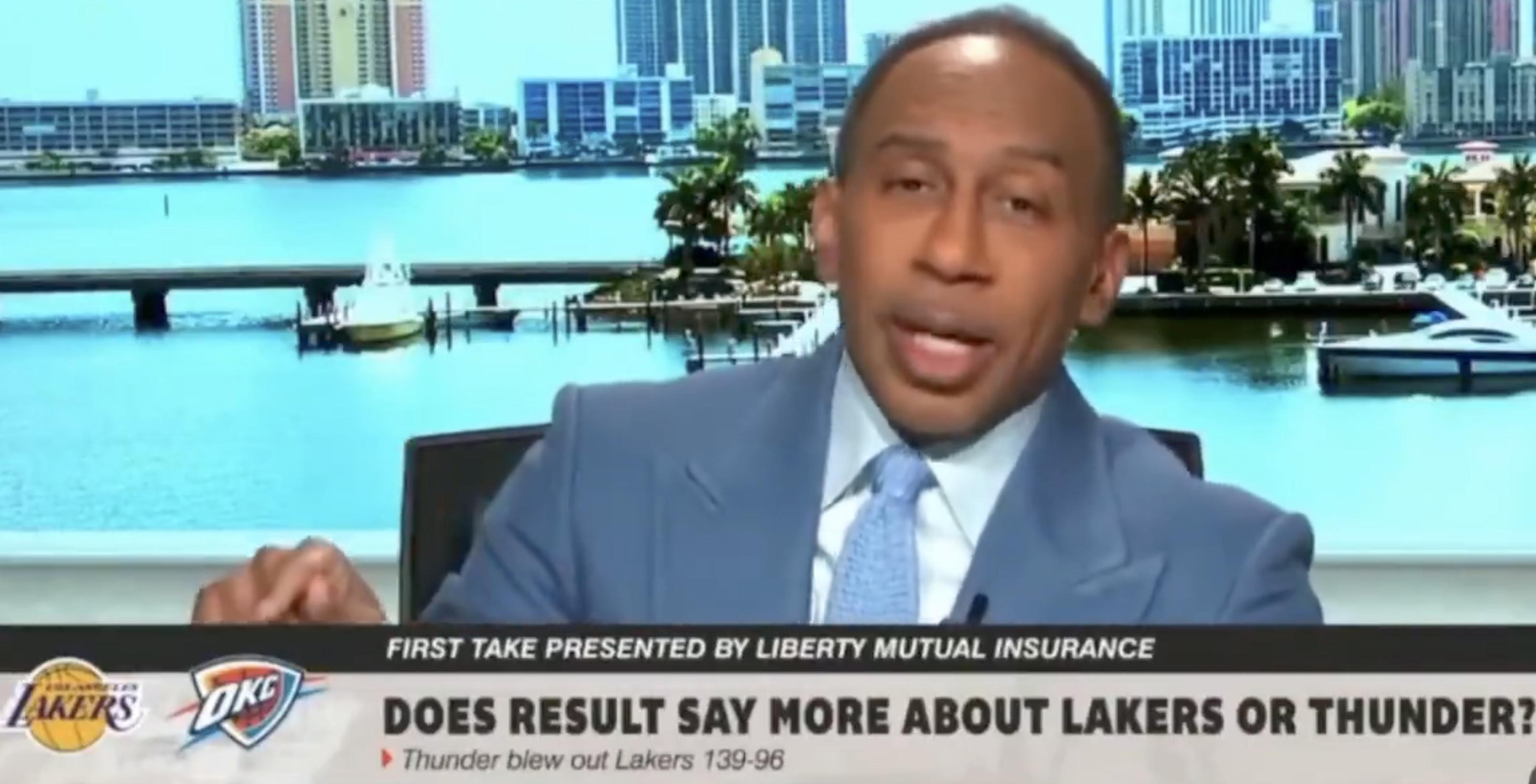 Stephen A. Smith is the same commentator who has repeatedly had verbal clashes with LeBron James and was stared down by James at a Lakers game,吓得不敢说话的那位. Probably, he went home late at night, lay in bed kicking the covers, tossing and turning, thinking: I wish I had said that instead.