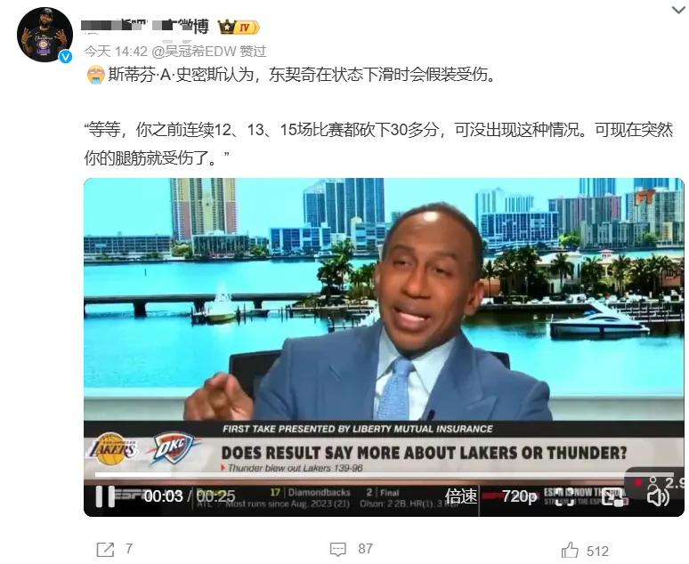 Commentator A-Smith also claimed on a program that Doncic was pretending to be injured, sparking strong disapproval with his poor remarks.