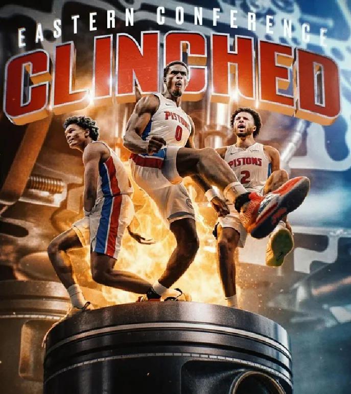 The Pistons' season record has reached 57 wins and 21 losses, officially locking in the No. 1 position in the East by surpassing formidable opponents such as the Celtics.